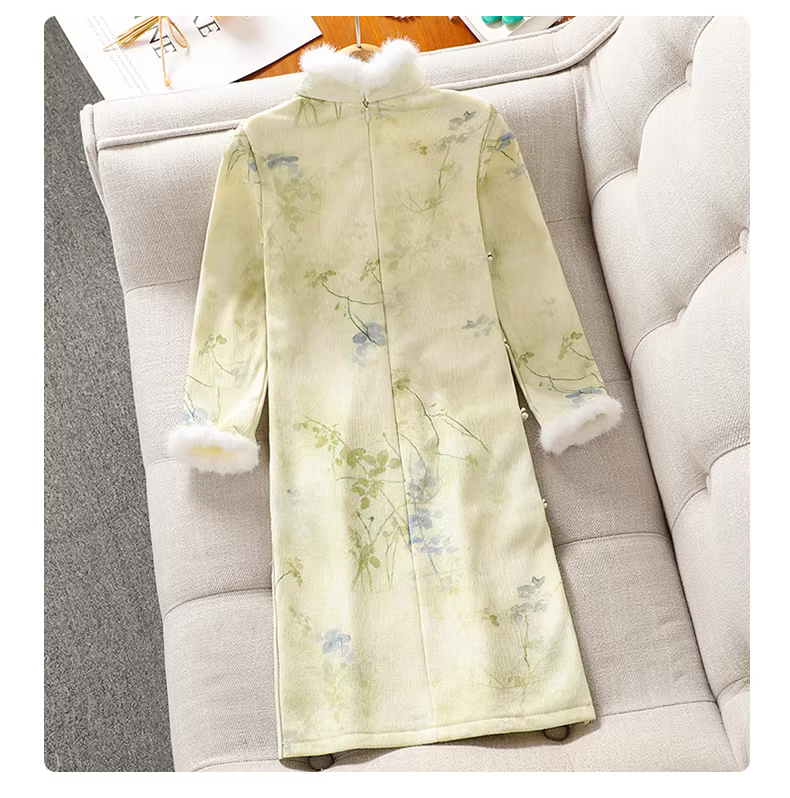 Váy sườn xám kiểu Trung Quốc dành cho bé gái mặc mùa đông mẫu mới 2025 dành cho các bé gái lớn hơn, váy Hanfu lót lông cừu cải tiến quần áo trẻ em mùa thu đông