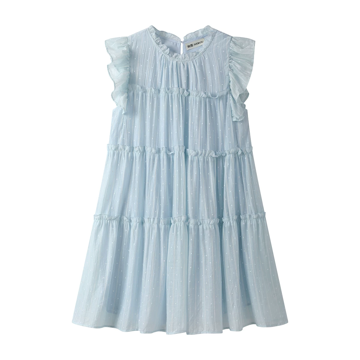 - Váy tay bồng kiểu Pháp dành cho nữ, mẫu hè mới, dáng rộng nhỏ nhắn, váy ngắn chữ A tôn dáng, váy xếp tầng.