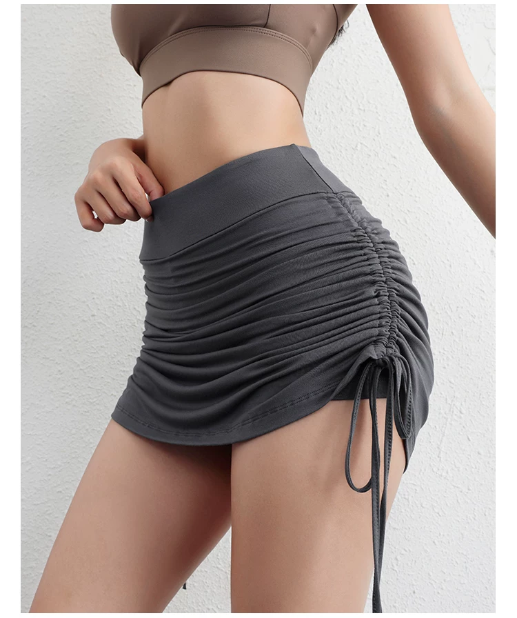 Váy thể thao rộng rãi dành cho nữ với quần short tập yoga chống lộ, quần váy tập thể dục khiêu vũ cạp cao có dây rút nhanh khô, kiểu giả hai mảnh.