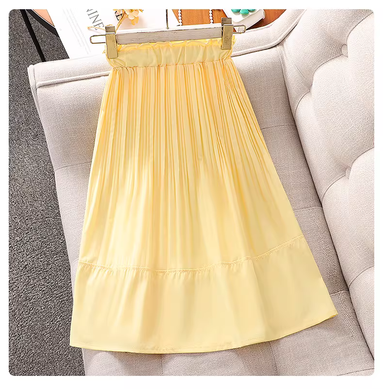 - Váy vàng hè kiểu mới 2025 cho bé gái, váy xếp ly dáng A cao eo tôn dáng, váy mỏng cho bé gái
