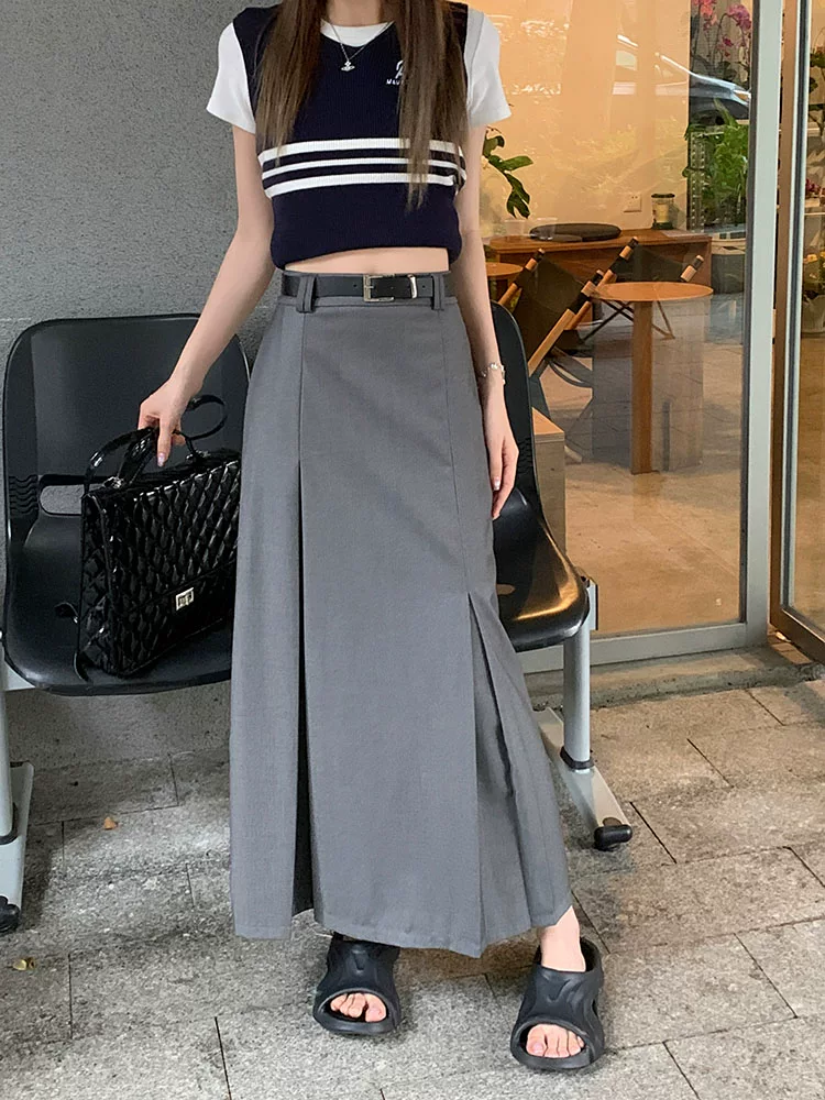 Váy vest xẻ tà màu xám cao cấp dành cho nữ, thiết kế thu gọn dáng người, kiểu dáng chữ A độc đáo, váy dài ôm hông phong cách retro.
