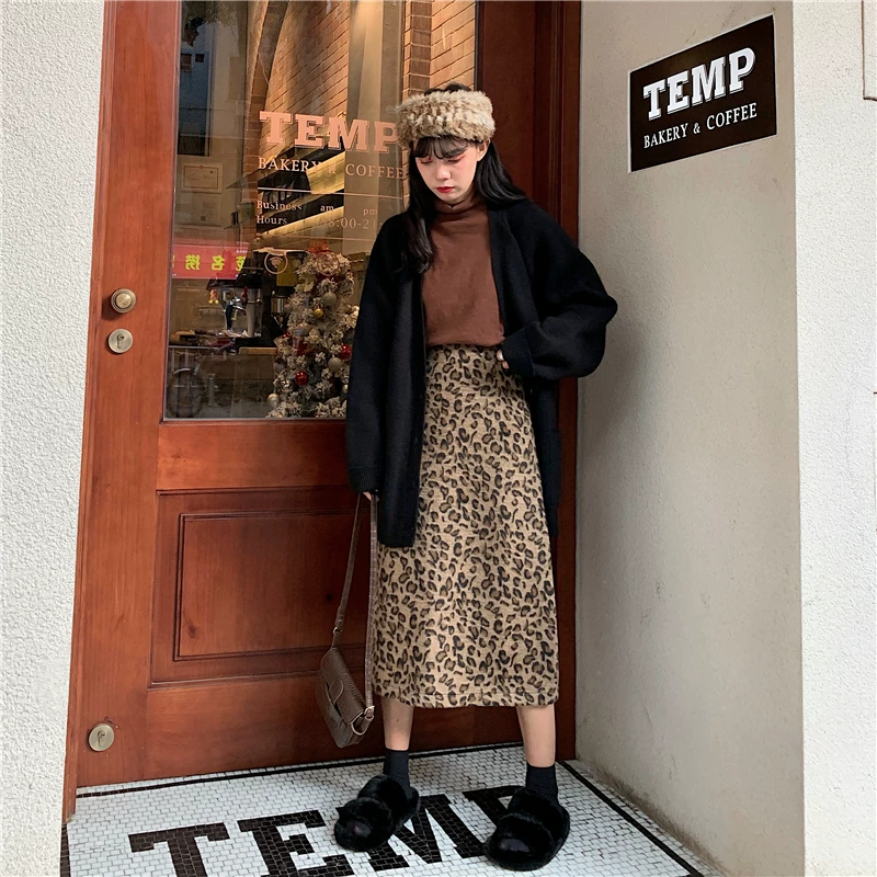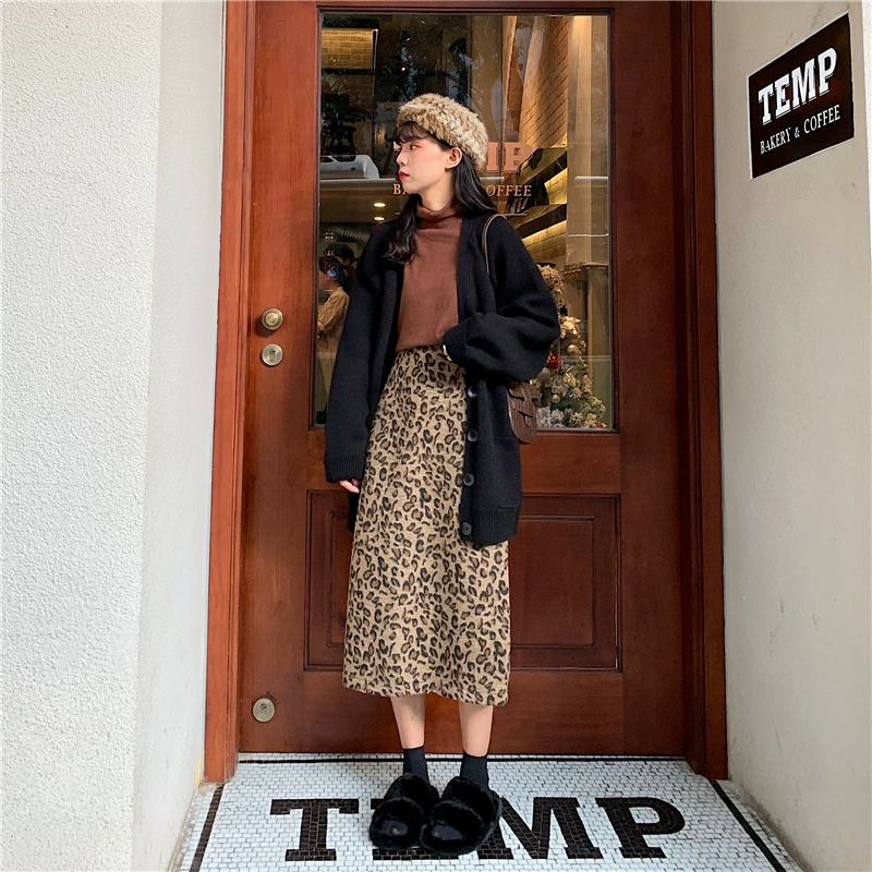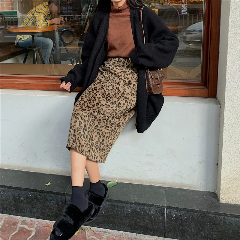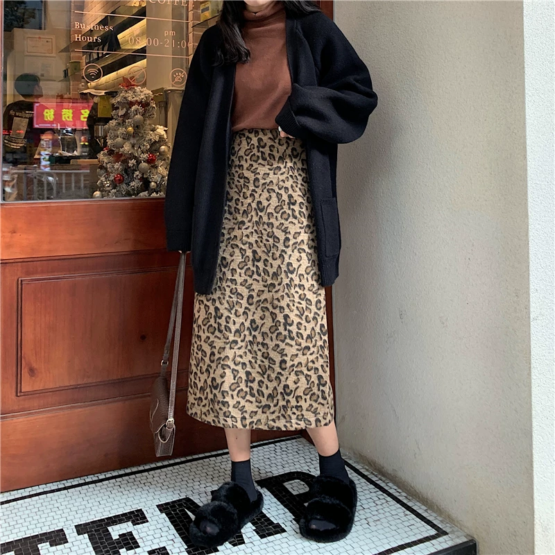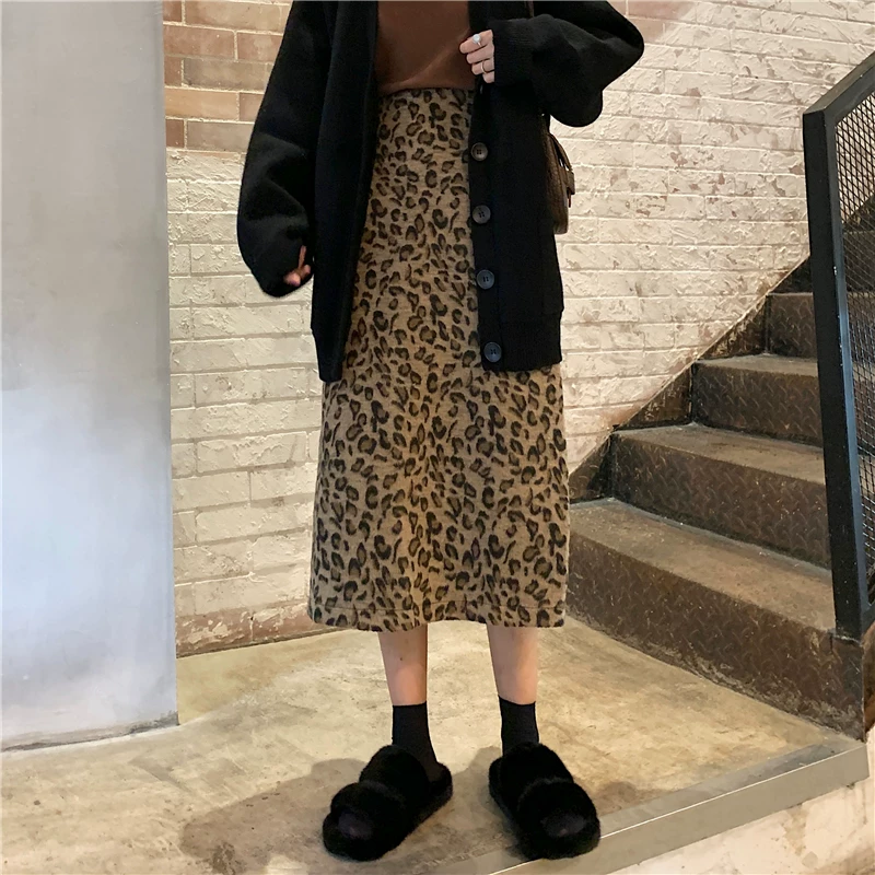 - Váy xẻ tà lưng cao dài ngang đùi in họa tiết da báo bằng len cỡ lớn dành cho nữ, kiểu dáng thu đông mới, ôm hông và tôn dáng cho phụ nữ mũm mĩm.