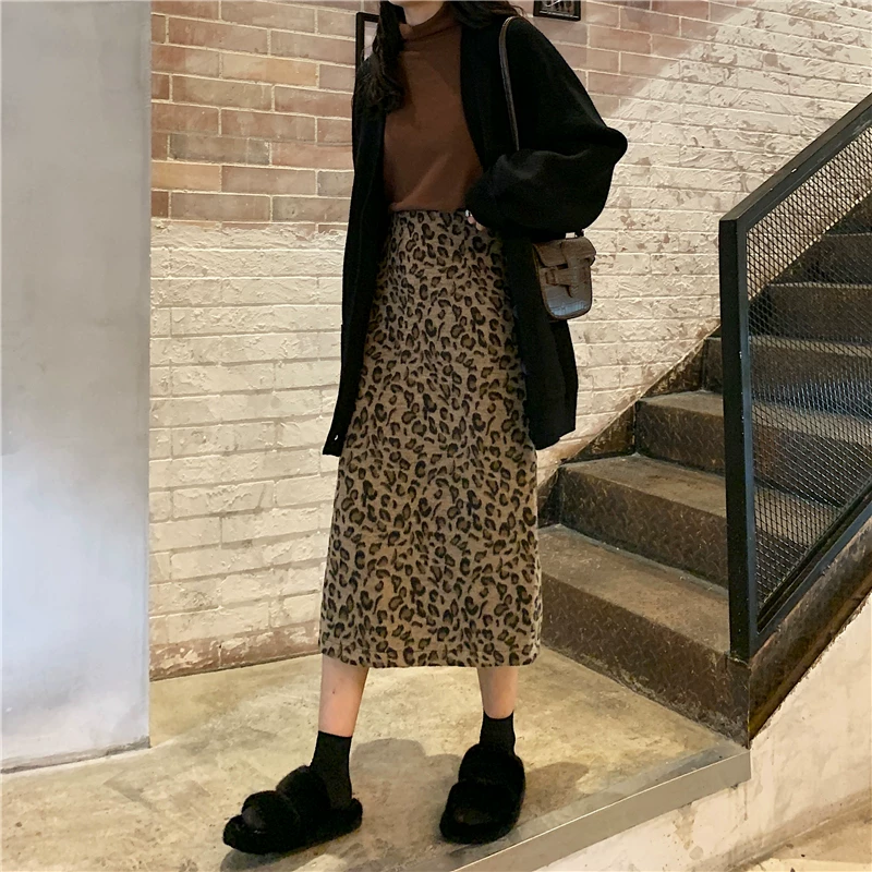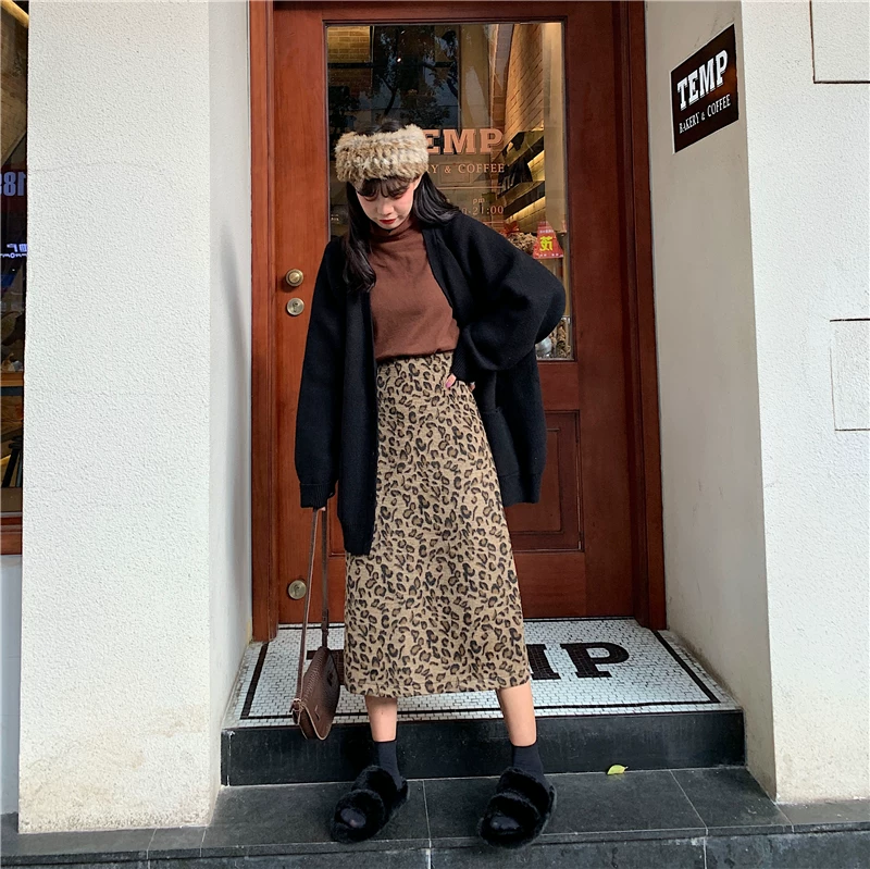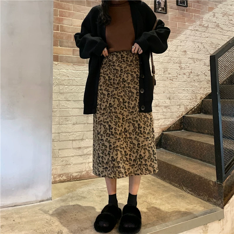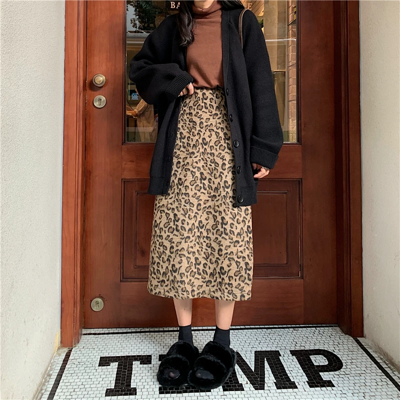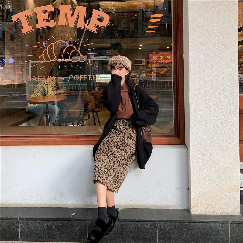 - Váy xẻ tà lưng cao dài ngang đùi in họa tiết da báo bằng len cỡ lớn dành cho nữ, kiểu dáng thu đông mới, ôm hông và tôn dáng cho phụ nữ mũm mĩm.