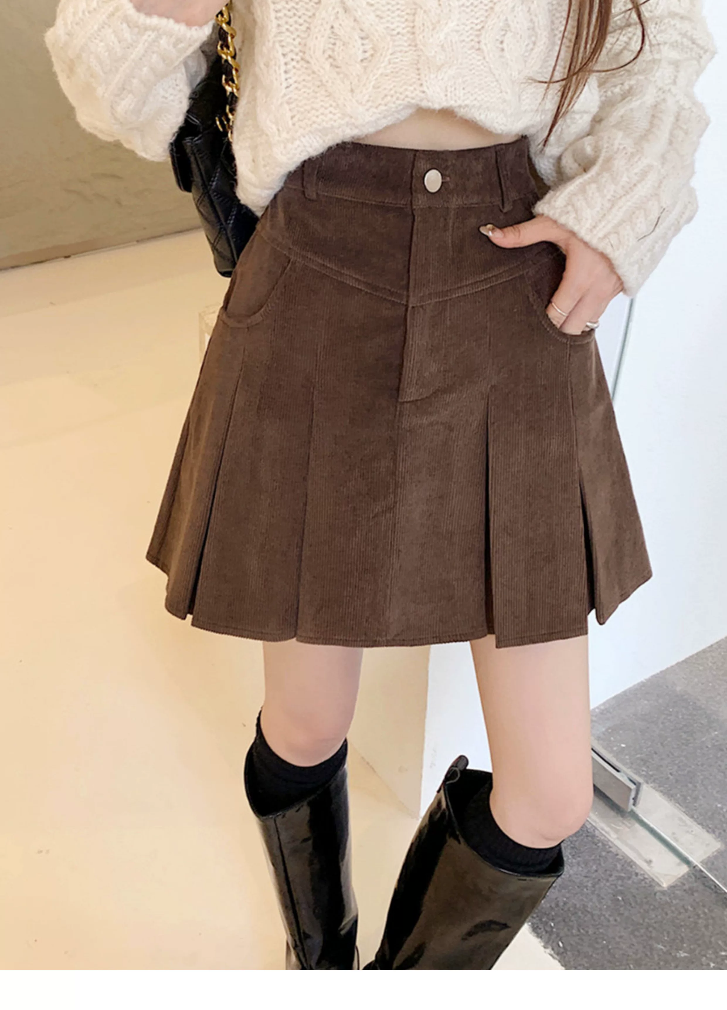 - Váy xếp ly bằng vải nhung cỡ lớn dành cho nữ, mùa thu đông, chống lộ, váy ngắn phong cách preppy, thiết kế lưng cao, váy chữ A.