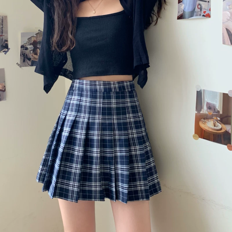 - Váy xếp ly ca rô JK, size lớn, cạp cao, dáng chữ A, dành cho nữ, mùa xuân hè, kiểu dáng học sinh, tôn dáng, váy ngắn ca rô