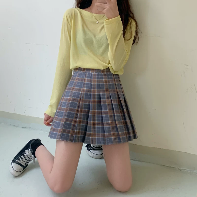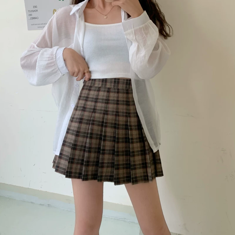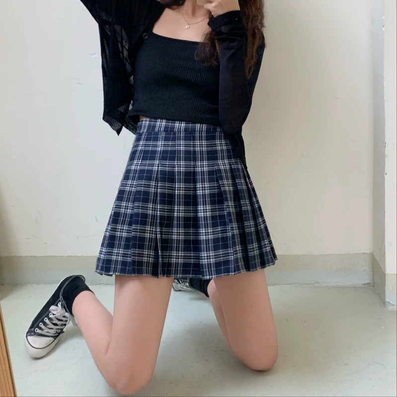 Váy xếp ly ca rô JK, size lớn, cạp cao, dáng chữ A, dành cho nữ, mùa xuân hè, kiểu dáng học sinh, tôn dáng, váy ngắn ca rô
