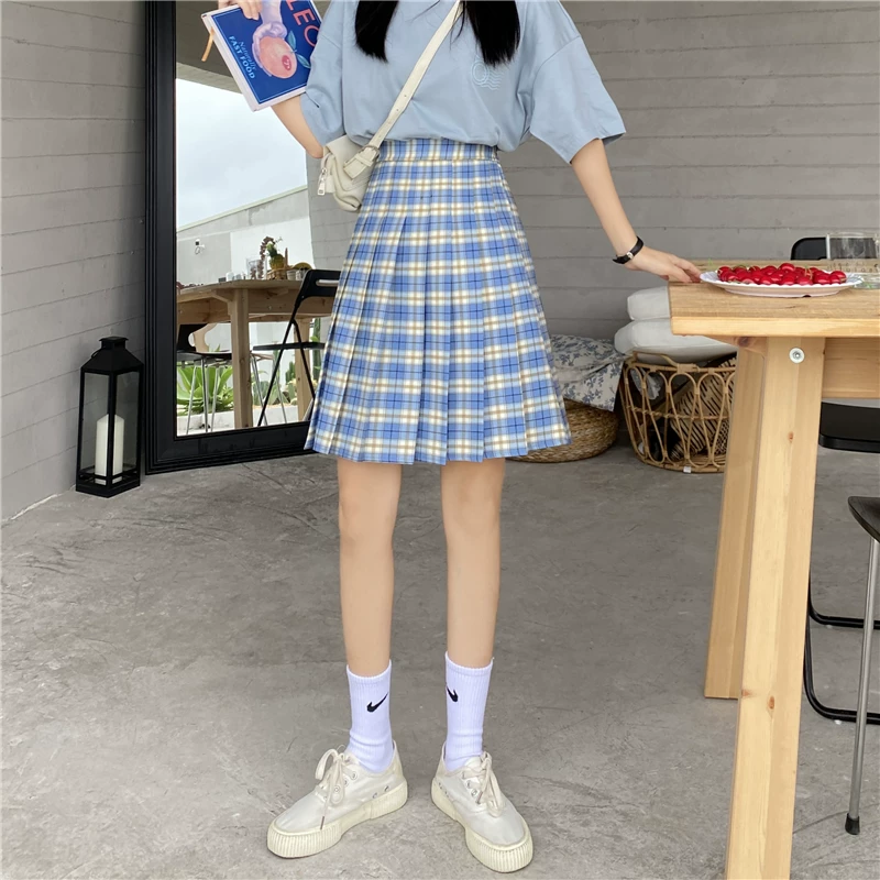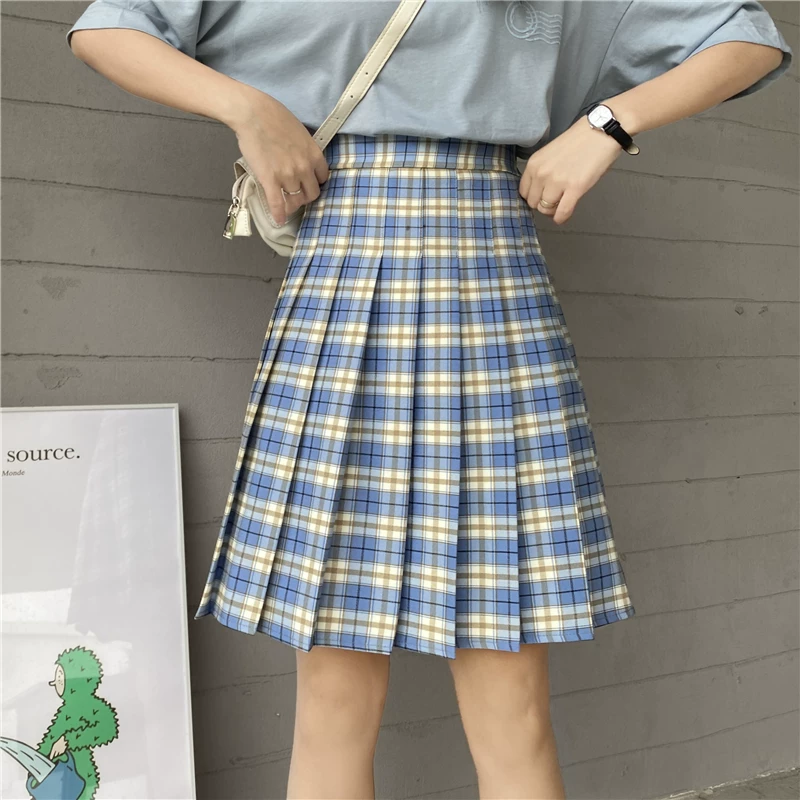 - Váy xếp ly cao eo kẻ ca rô dáng dài trung bình dành cho nữ mập (cỡ lớn) váy xòe kiểu học sinh JK dáng chữ A váy bm