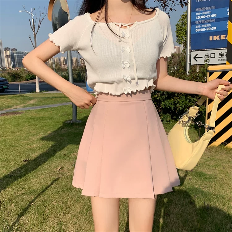 - Váy xếp ly chữ A cạp cao cỡ lớn dành cho nữ, váy tôn dáng và che bụng cho mùa hè, váy ngắn che bụng và thon gọn.