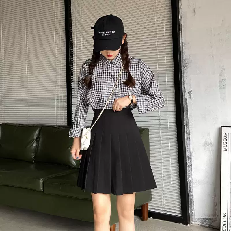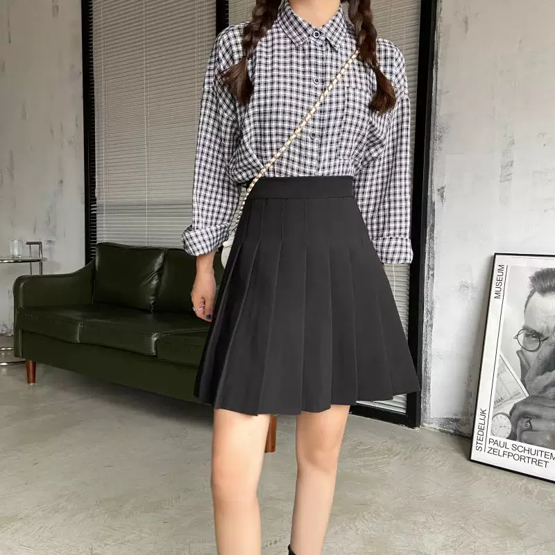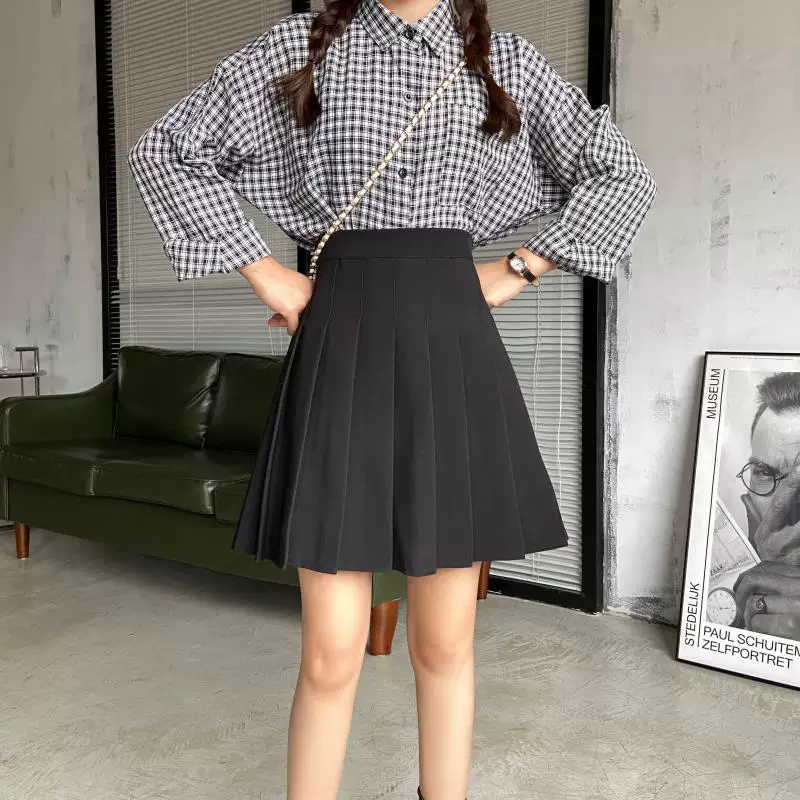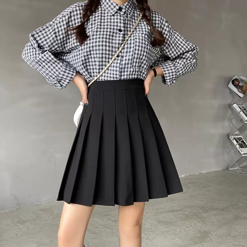 - Váy xếp ly cỡ lớn, chống lộ, dành cho nữ mùa hè, váy chữ A dài vừa phải, cạp cao, tôn dáng, dành cho học sinh, váy ngắn JK, váy nửa thân.