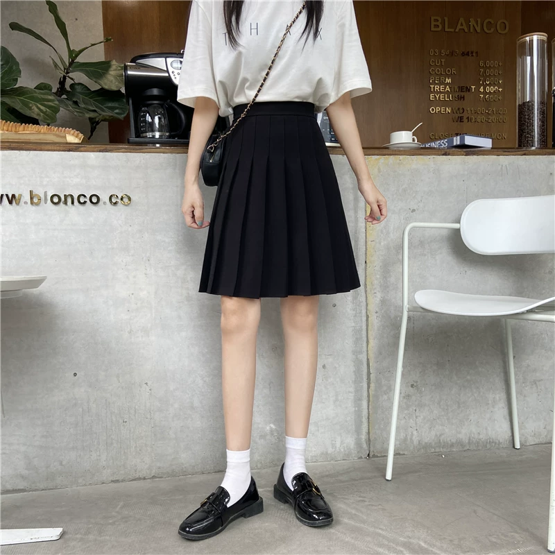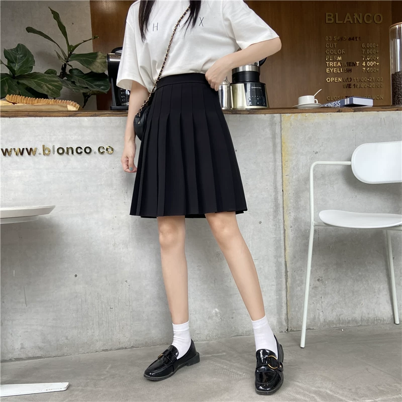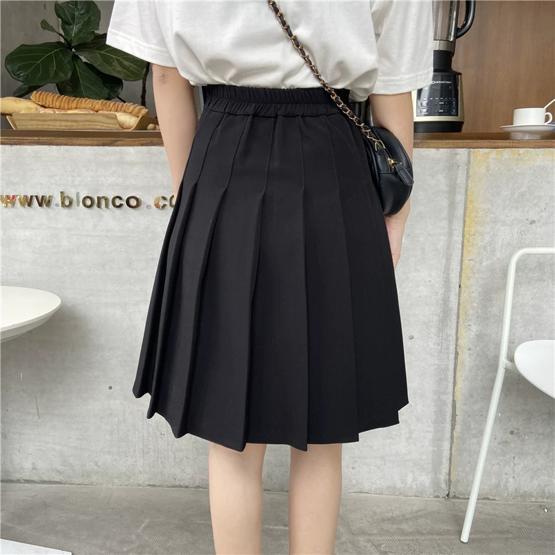 Váy xếp ly cỡ lớn, váy dài vừa phải dành cho nữ, mùa hè, dành cho phụ nữ mũm mĩm, eo co giãn, váy chữ A thon gọn, váy giữa kiểu JK, váy che hông.