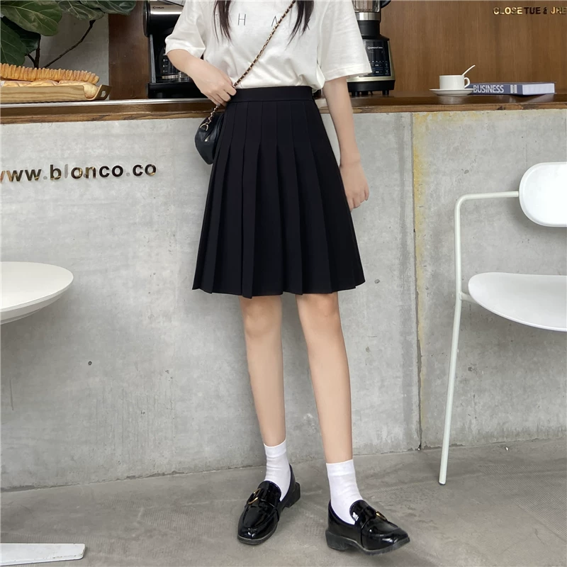 - Váy xếp ly cỡ lớn, váy dài vừa phải dành cho nữ, mùa hè, dành cho phụ nữ mũm mĩm, eo co giãn, váy chữ A thon gọn, váy giữa kiểu JK, váy che hông.