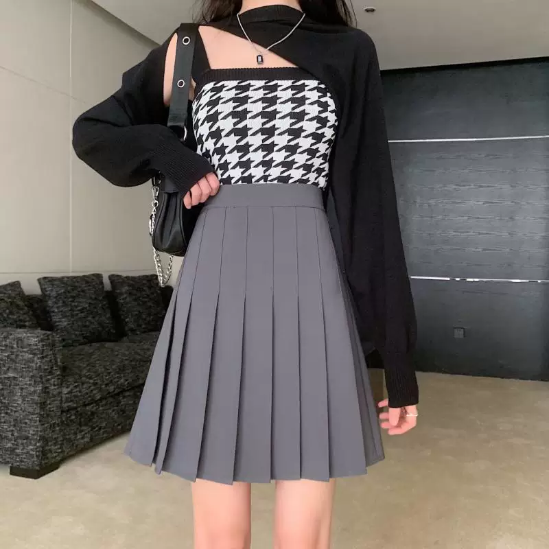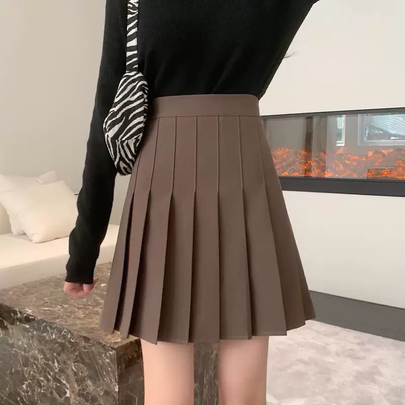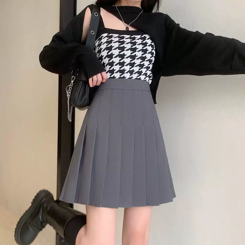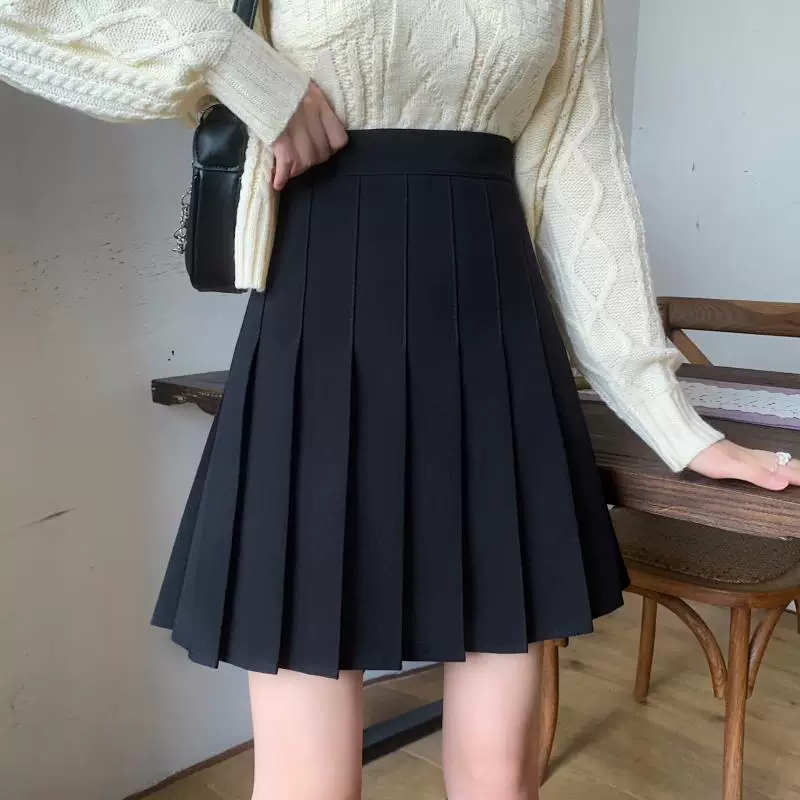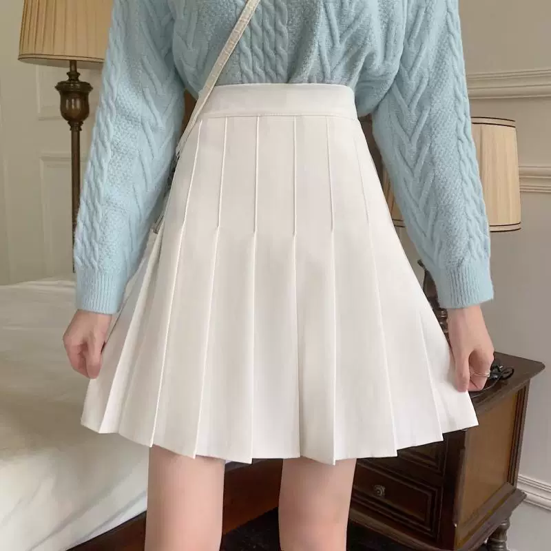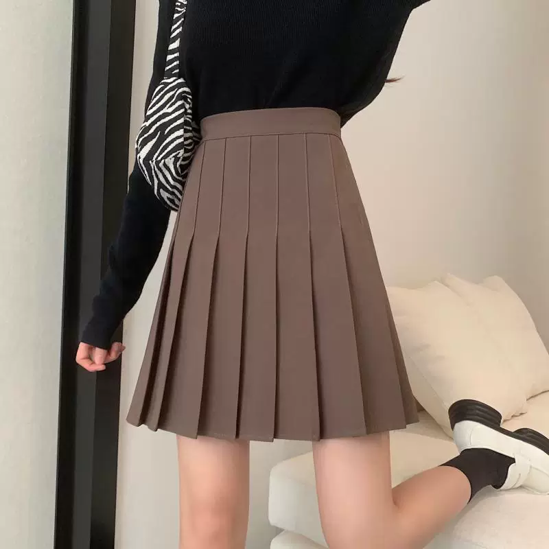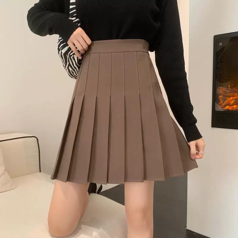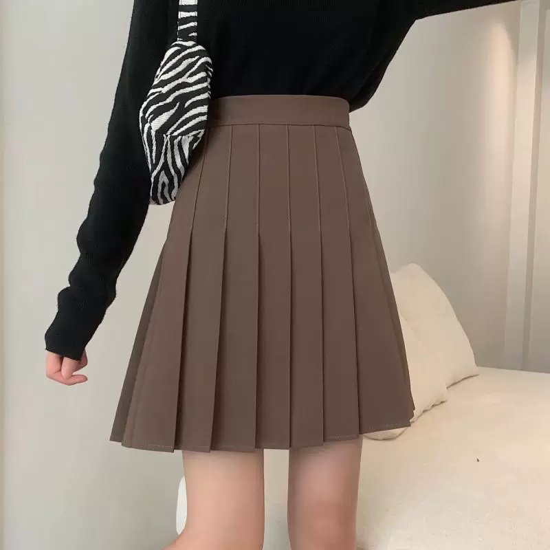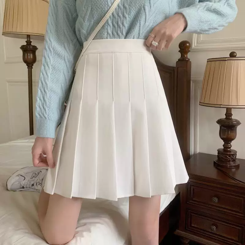 - Váy xếp ly dài ngang đùi, cạp cao, size lớn cho nữ, kiểu học sinh mùa hè, chống lộ, dáng chữ A tôn dáng.