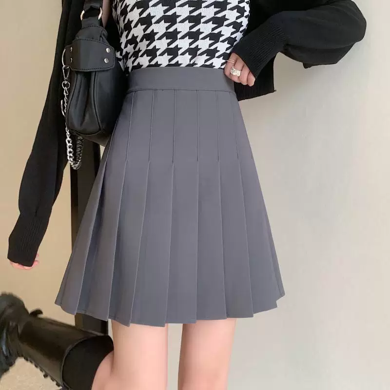 Váy xếp ly dài ngang đùi, cạp cao, size lớn cho nữ, kiểu học sinh mùa hè, chống lộ, dáng chữ A tôn dáng.