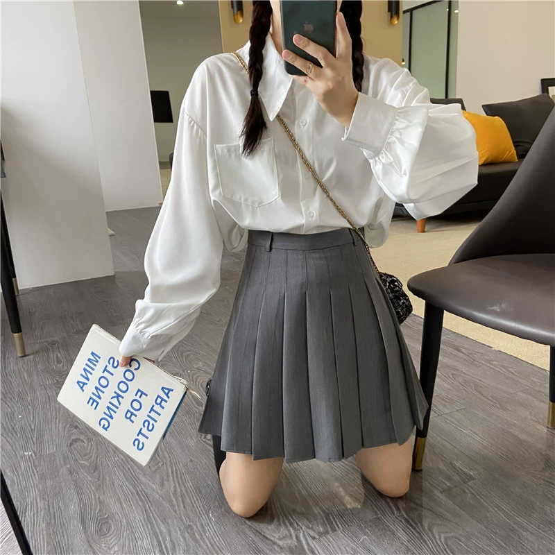 - Váy xếp ly dáng chữ A, kiểu dáng đa năng, giúp thon gọn, dành cho phụ nữ mũm mĩm, kiểu dáng ngắn, nửa váy, kiểu học sinh, chống lộ, quần váy cho nữ