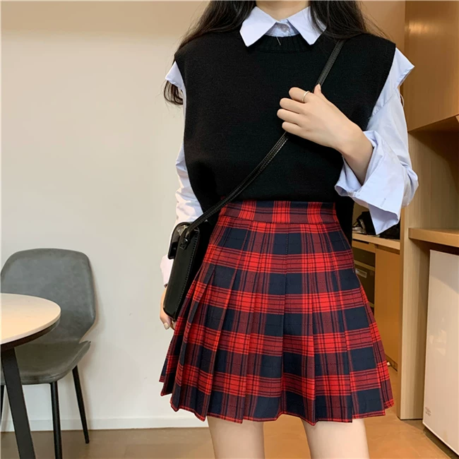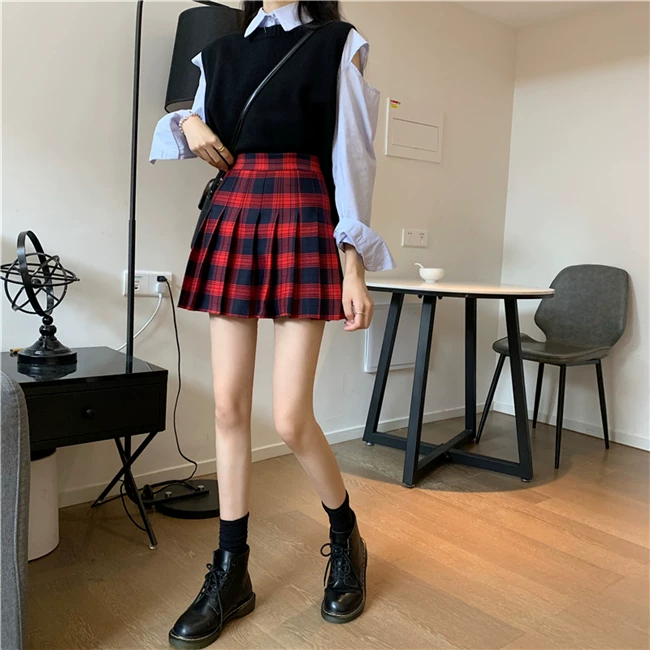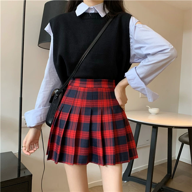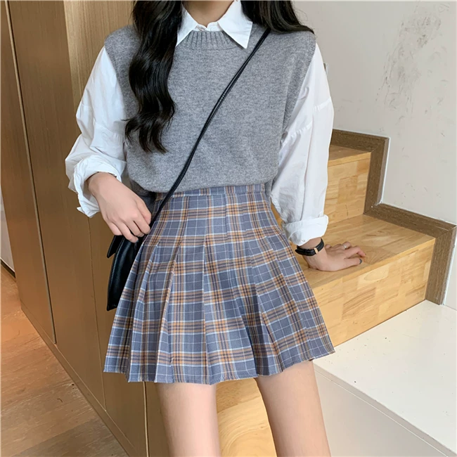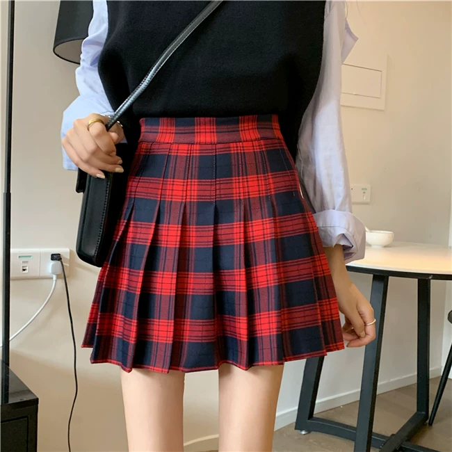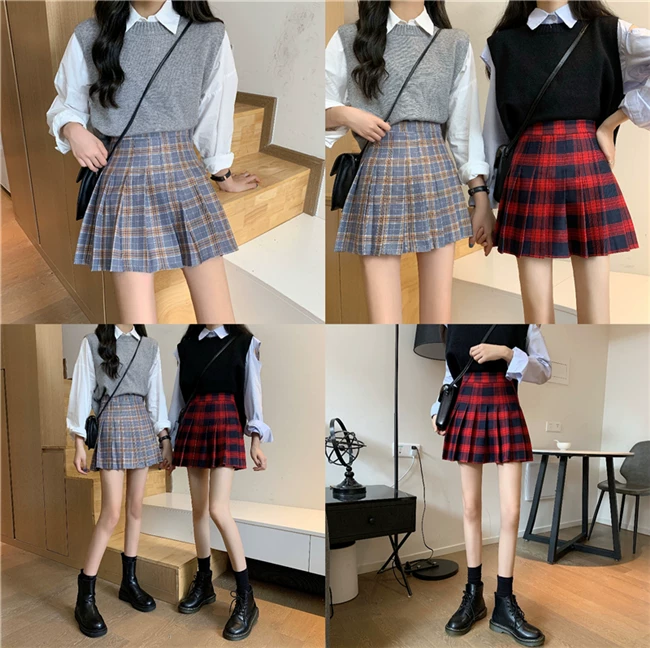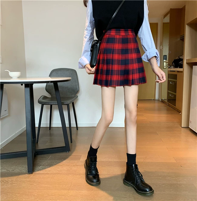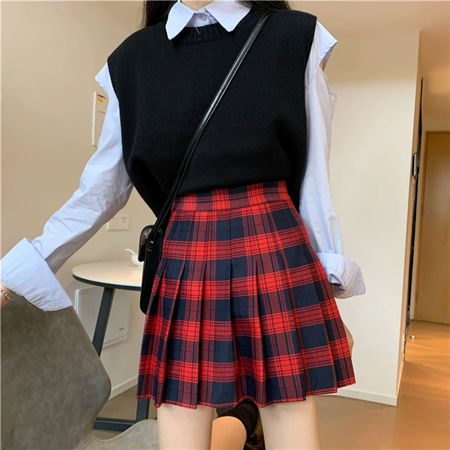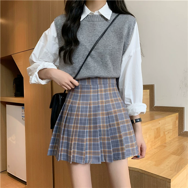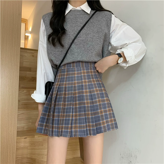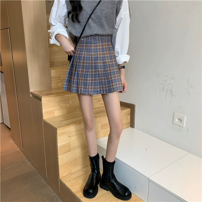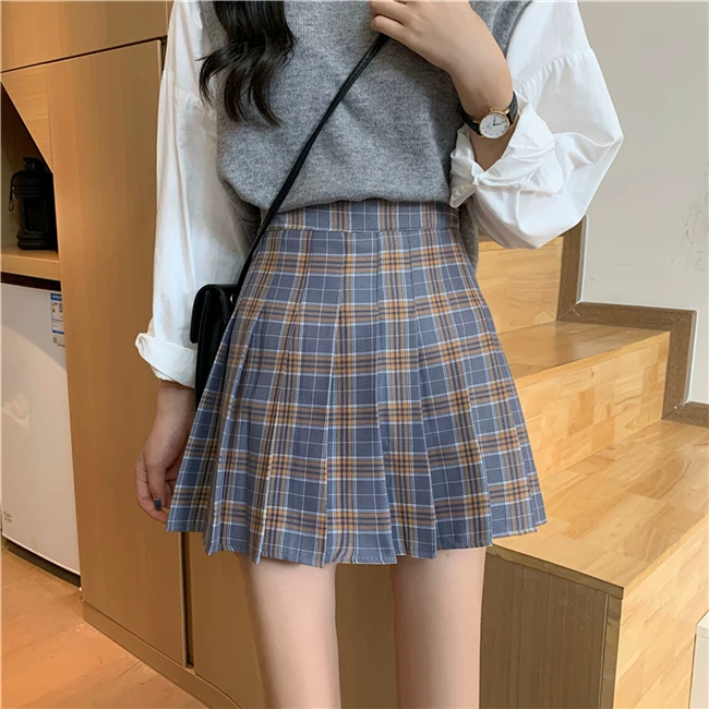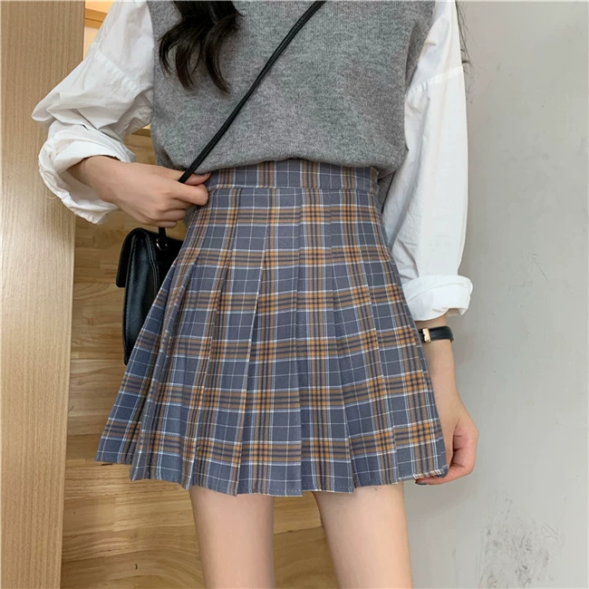- Váy xếp ly kẻ caro kiểu đồng phục JK cỡ lớn dành cho nữ, kiểu mới xuân hè 2023, dành cho người mập, cạp cao, dáng chữ A, ngắn