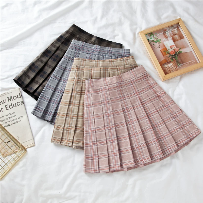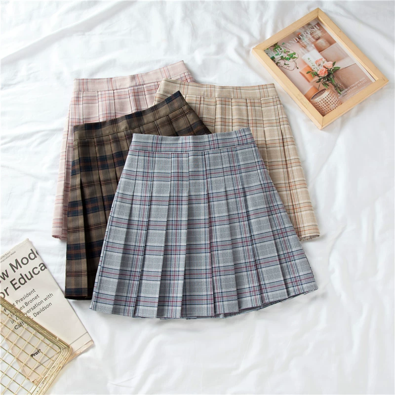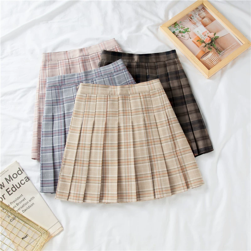 - Váy xếp ly kẻ caro lưng thun mùa hè size lớn dành cho người mập, váy chữ A cao eo, váy ngắn tôn dáng phong cách preppy, váy ngắn kiểu jk