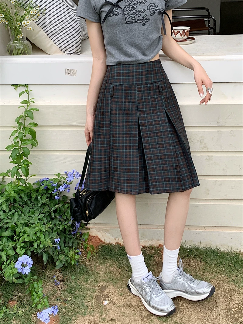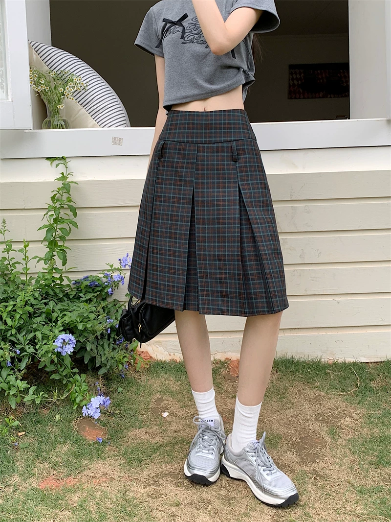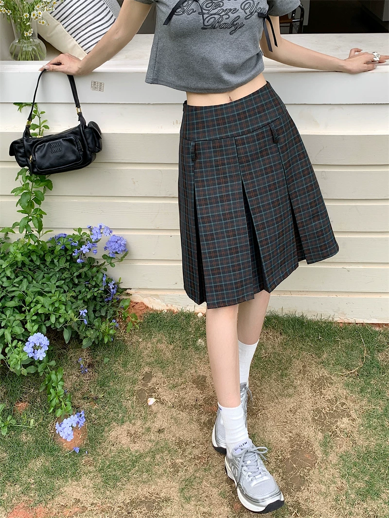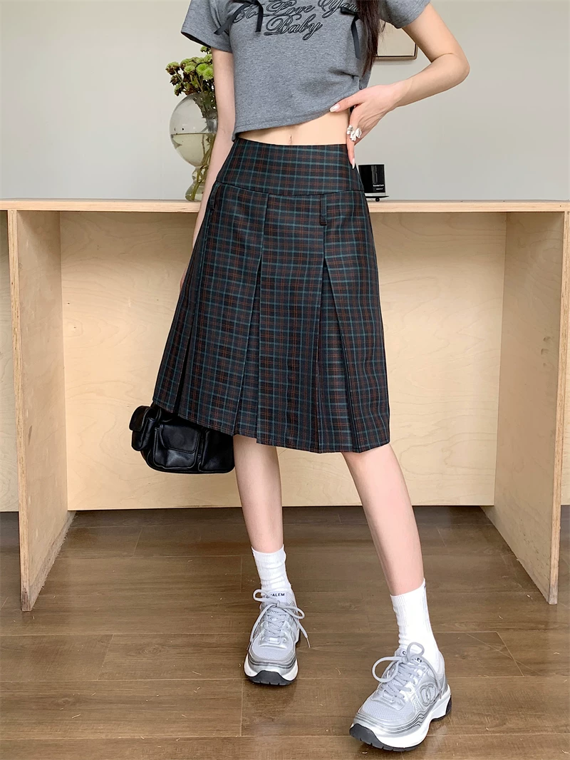 - Váy xếp ly kẻ sọc cổ điển kiểu Mỹ, váy ngắn chữ A cỡ lớn dành cho nữ, váy kiểu học sinh cạp cao dành cho phụ nữ nhỏ nhắn.