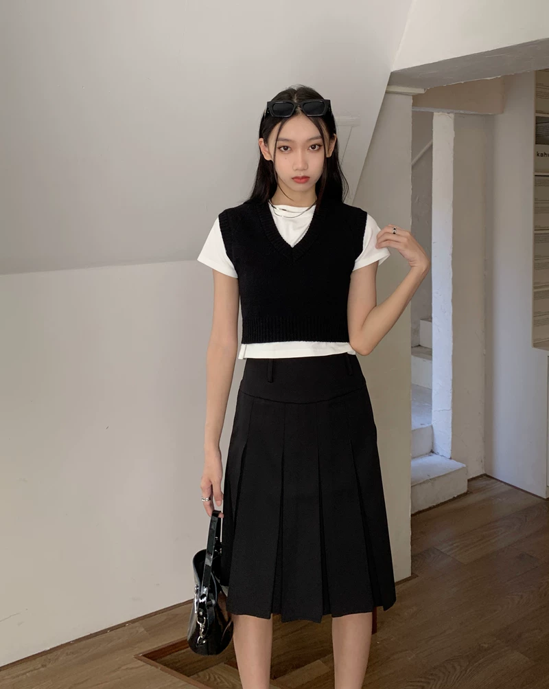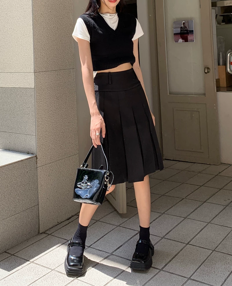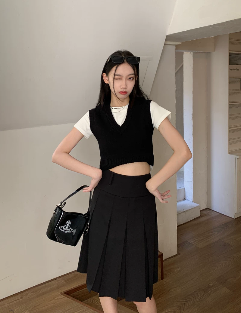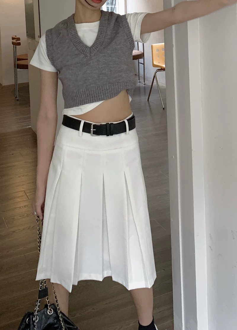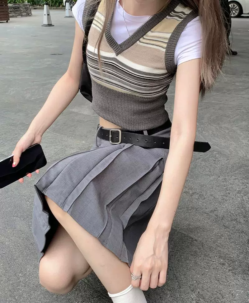 - Váy xếp ly kiểu học sinh, cạp cao, size lớn cho nữ, màu xám, dáng chữ A, thiết kế tôn dáng mùa thu.