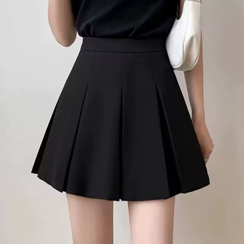 - Váy xếp ly màu đen cỡ lớn, váy ngắn chữ A mùa xuân hè dành cho nữ, váy cạp cao kiểu đại học, giúp thon gọn và che bụng.