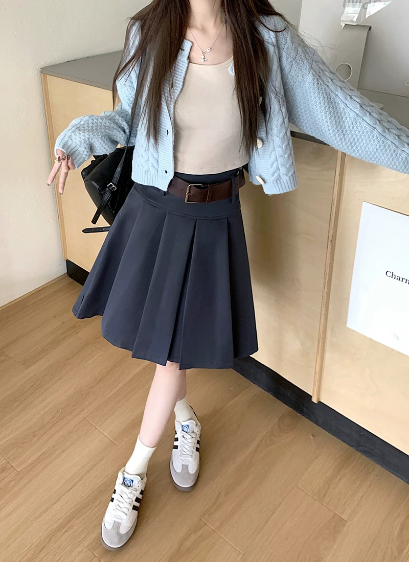 - Váy xếp ly màu nâu cỡ lớn, váy dáng dù dài ngang đùi cao eo dành cho nữ mùa xuân hè, thiết kế kiểu preppy dáng chữ A.