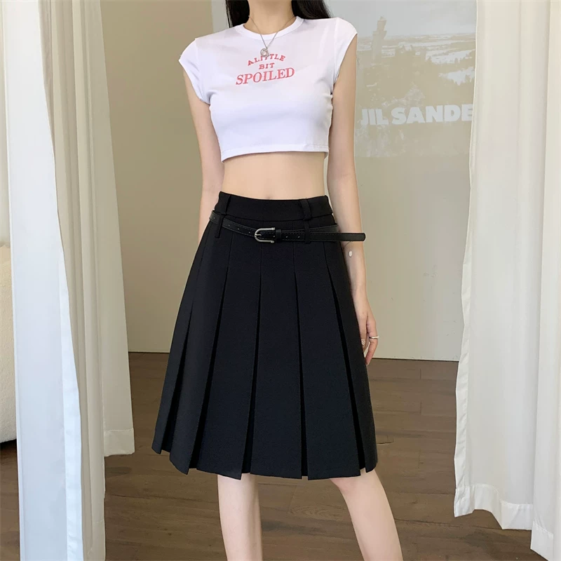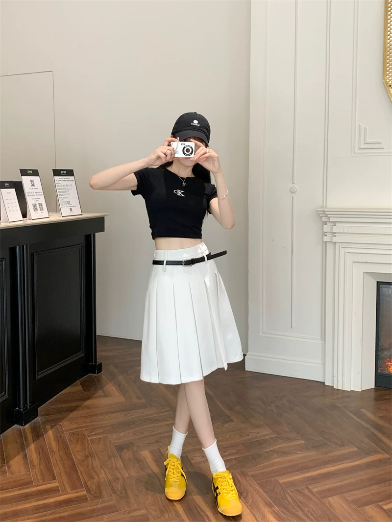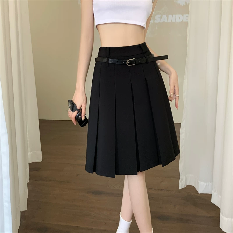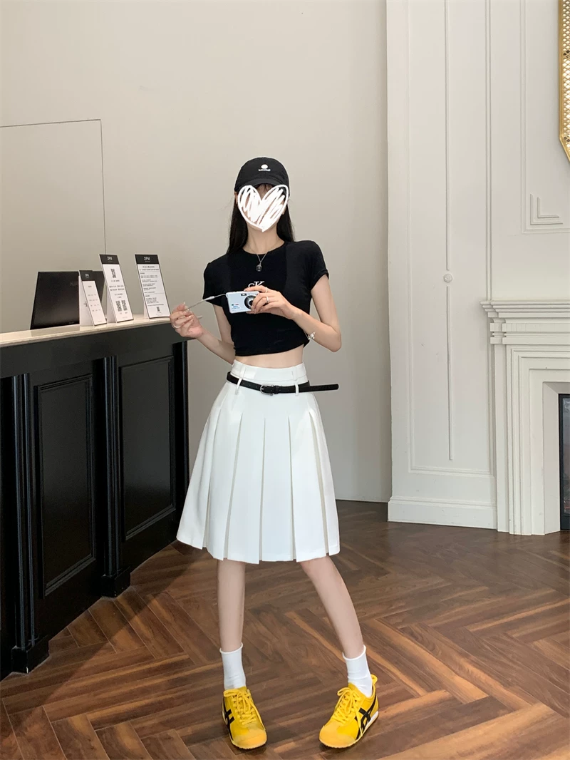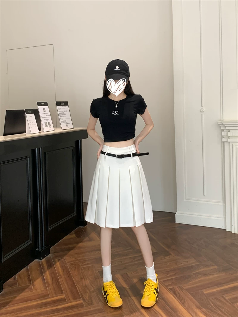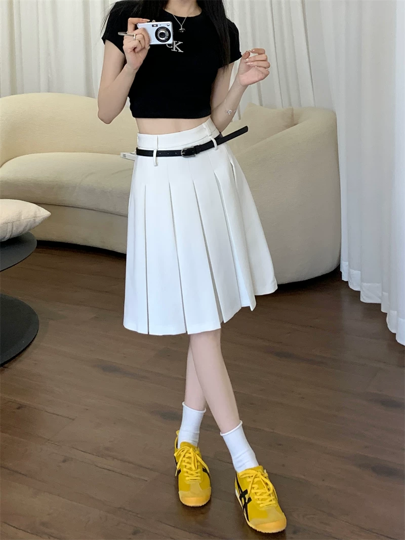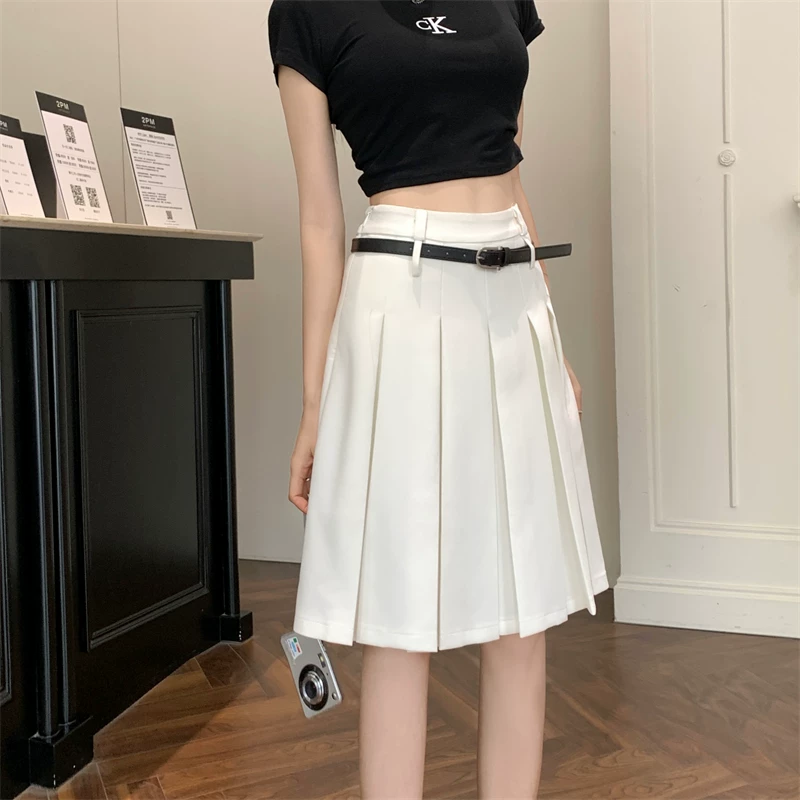 - Váy xếp ly màu trắng cao cấp dành cho nữ, thiết kế mùa thu, kiểu dáng độc đáo, dáng chữ A dài trung bình, phong cách preppy che hông.