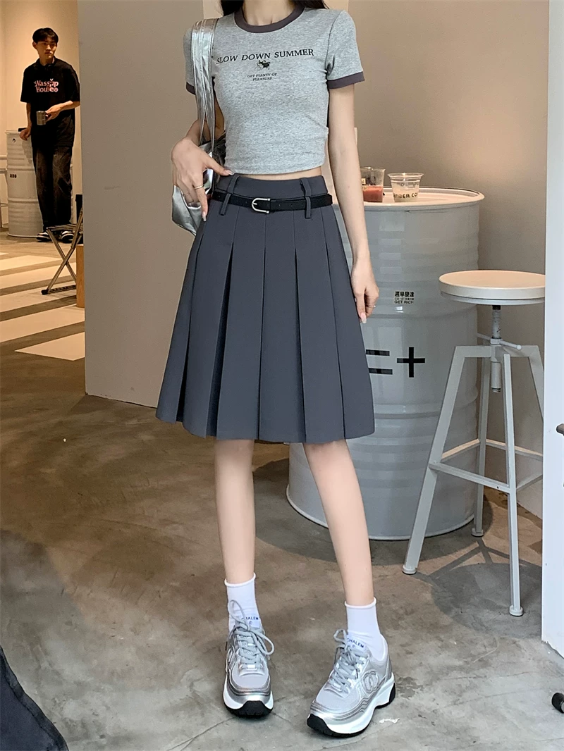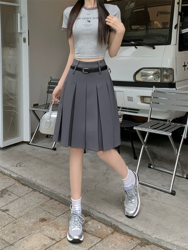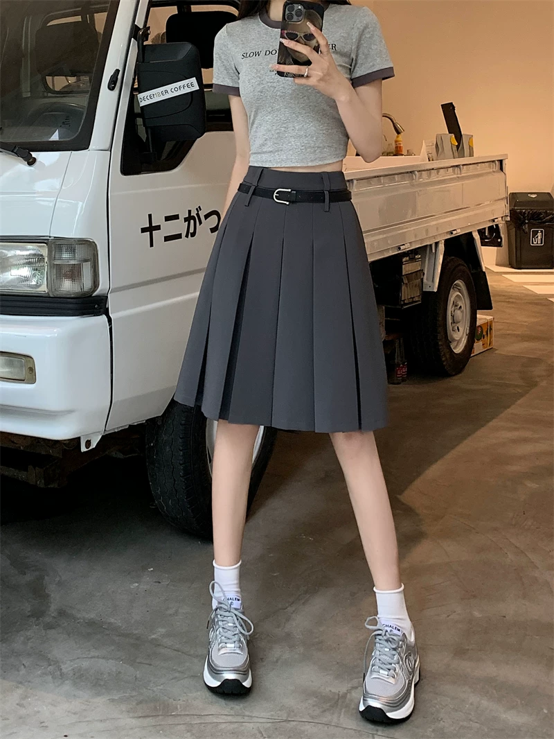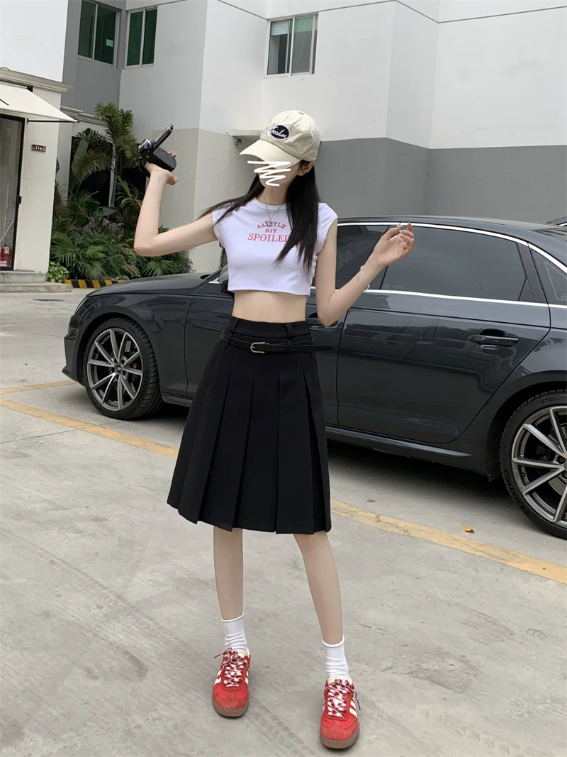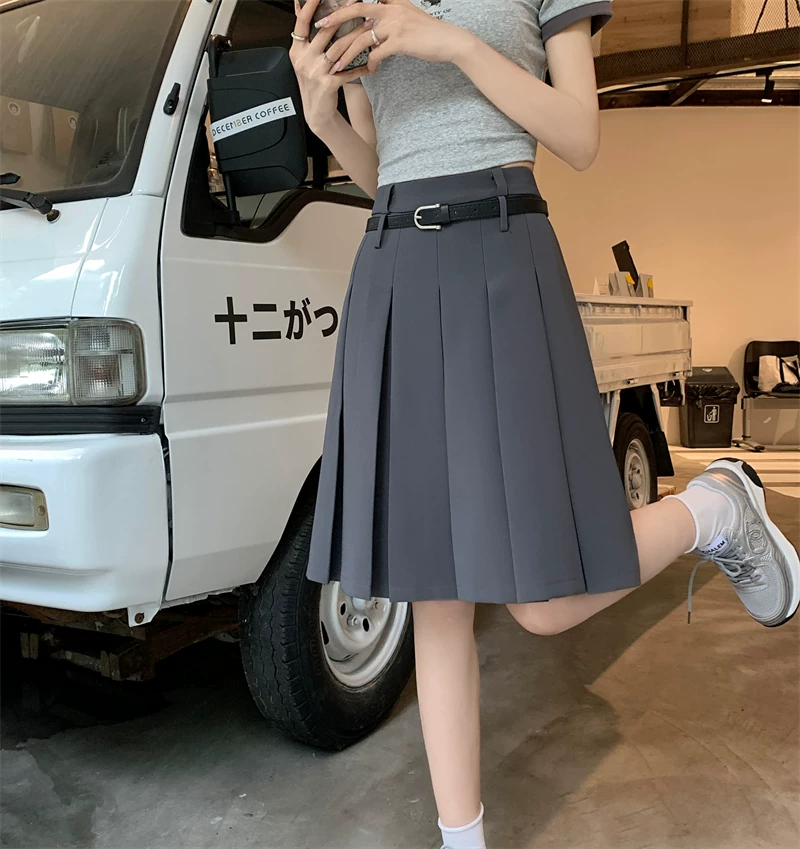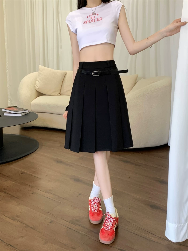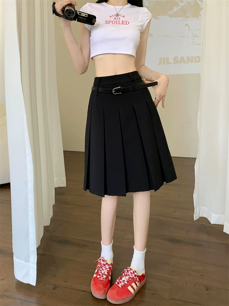 - Váy xếp ly màu trắng cao cấp dành cho nữ, thiết kế mùa thu, kiểu dáng độc đáo, dáng chữ A dài trung bình, phong cách preppy che hông.