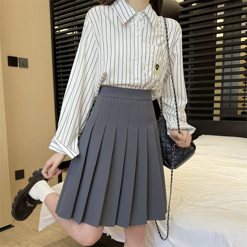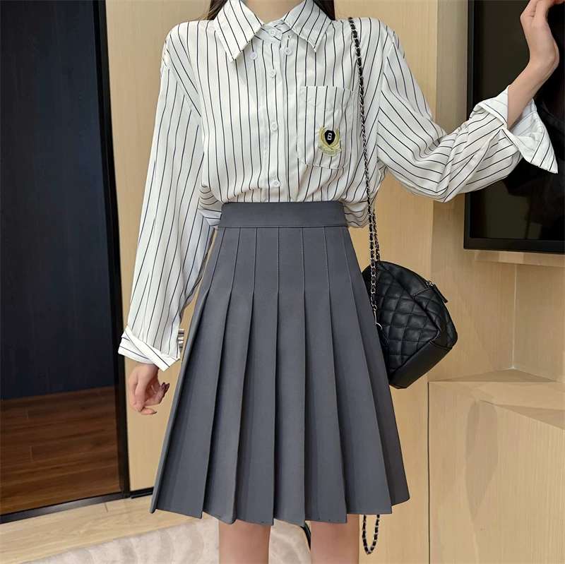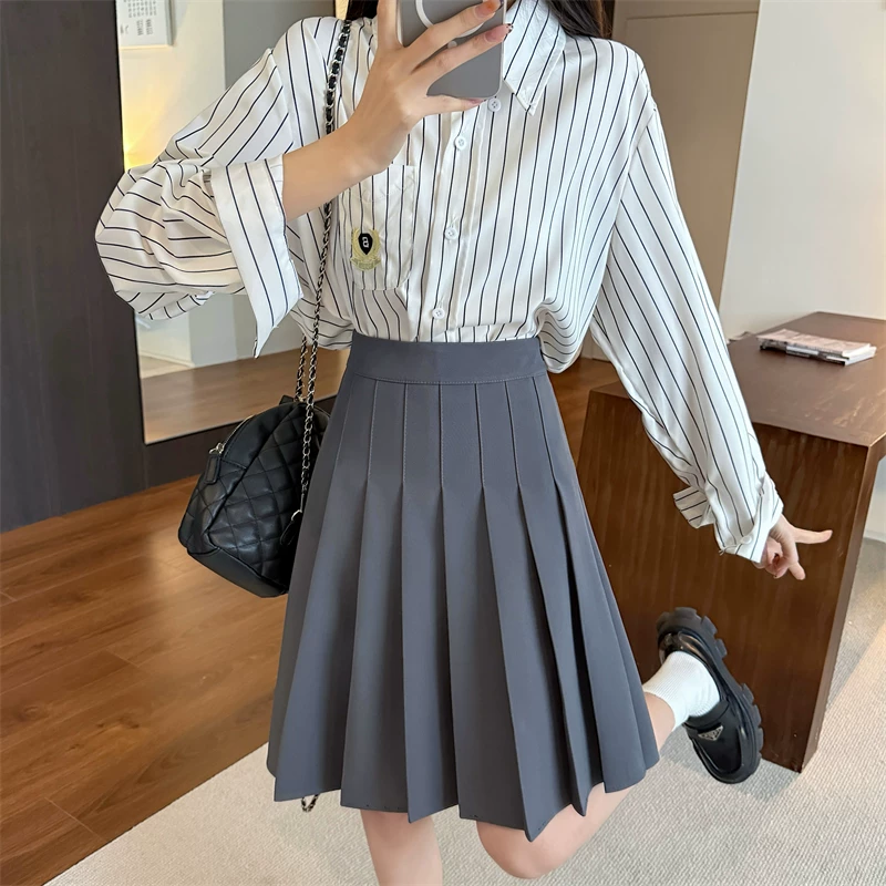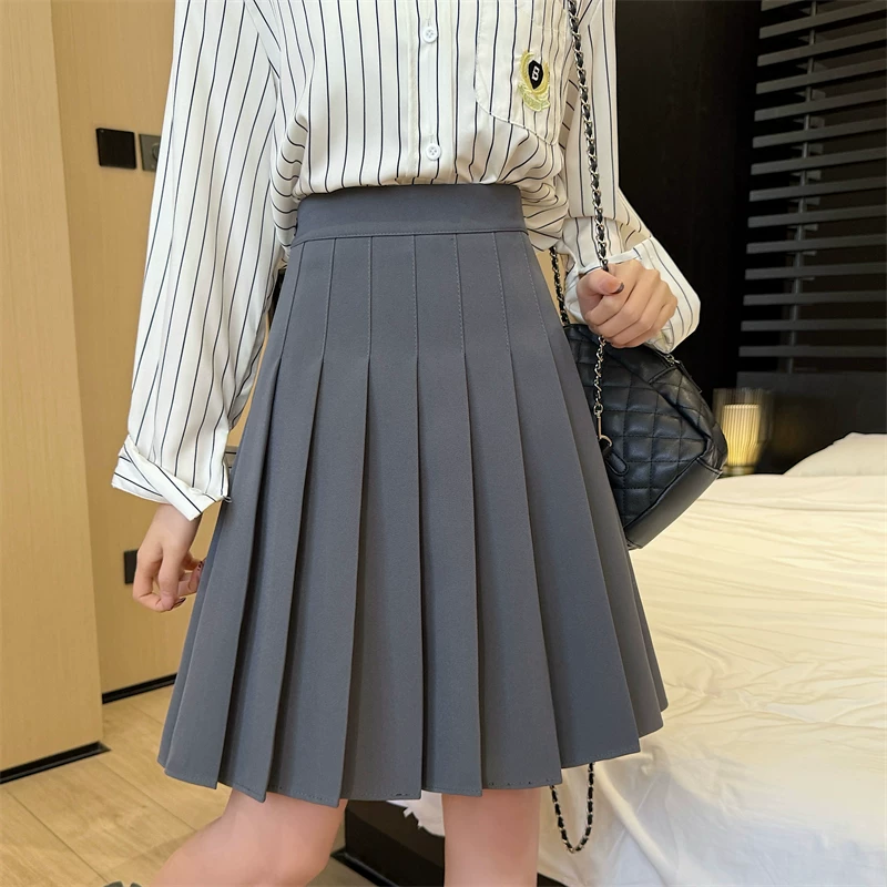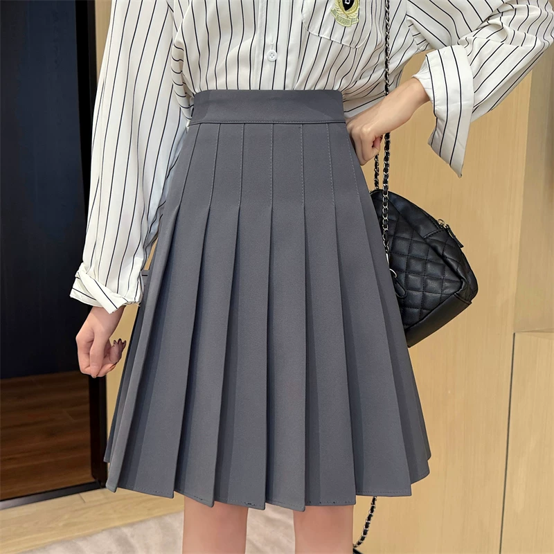 - Váy xếp ly màu xám cực dài dành cho nữ, mùa xuân hè, lưng cao, tôn dáng, váy chữ A phong cách preppy, chống lộ, váy dài vừa phải.