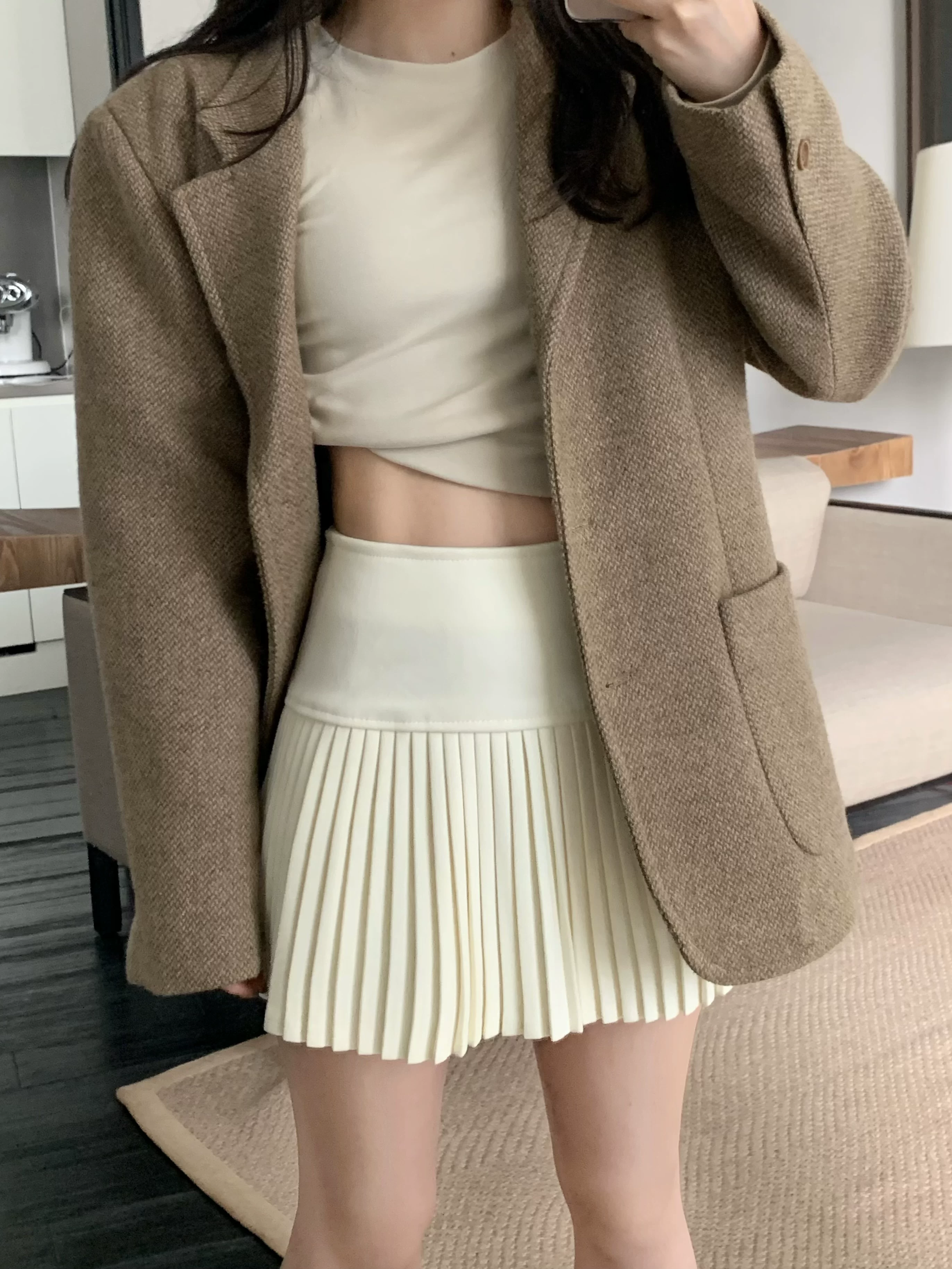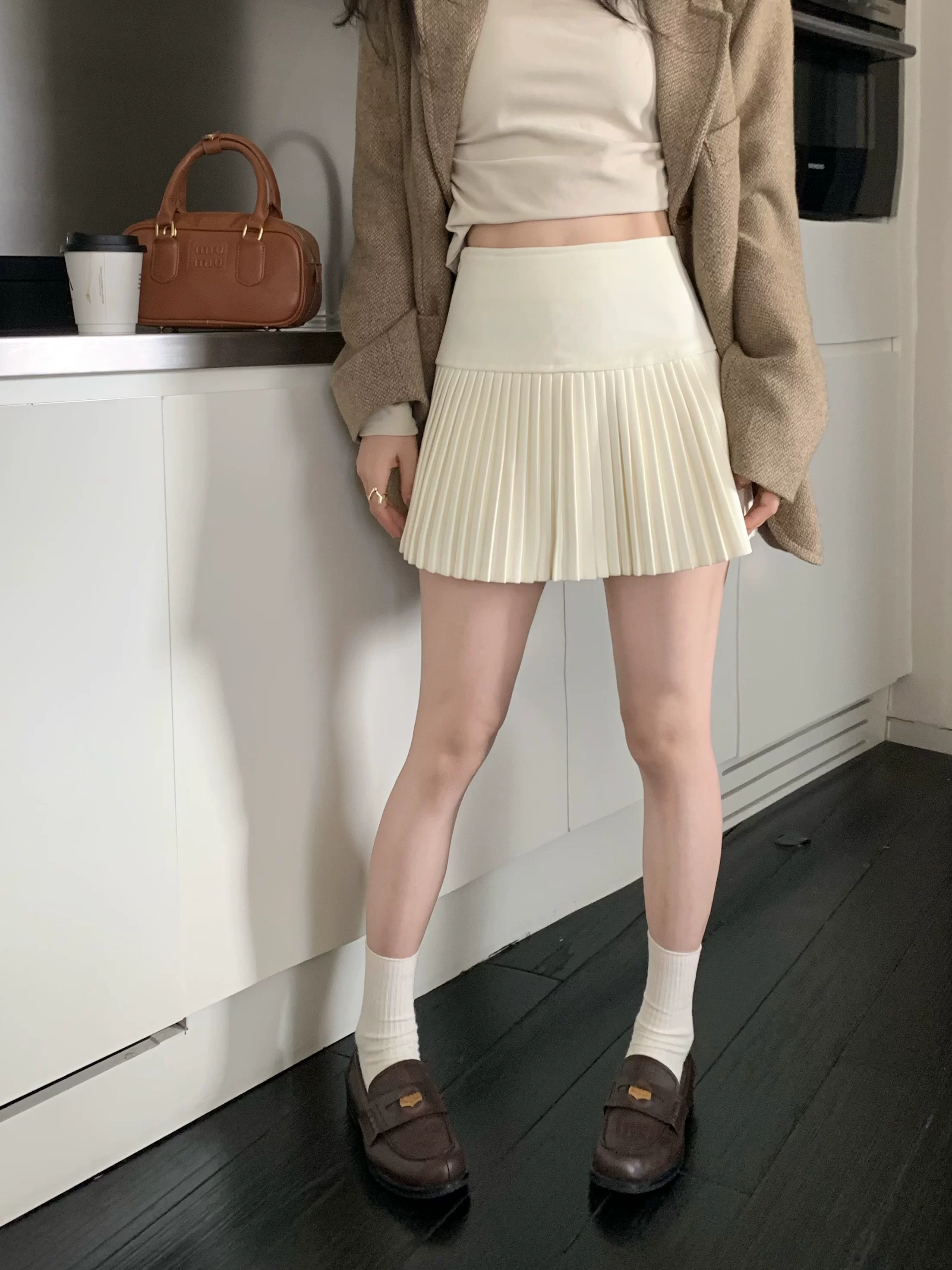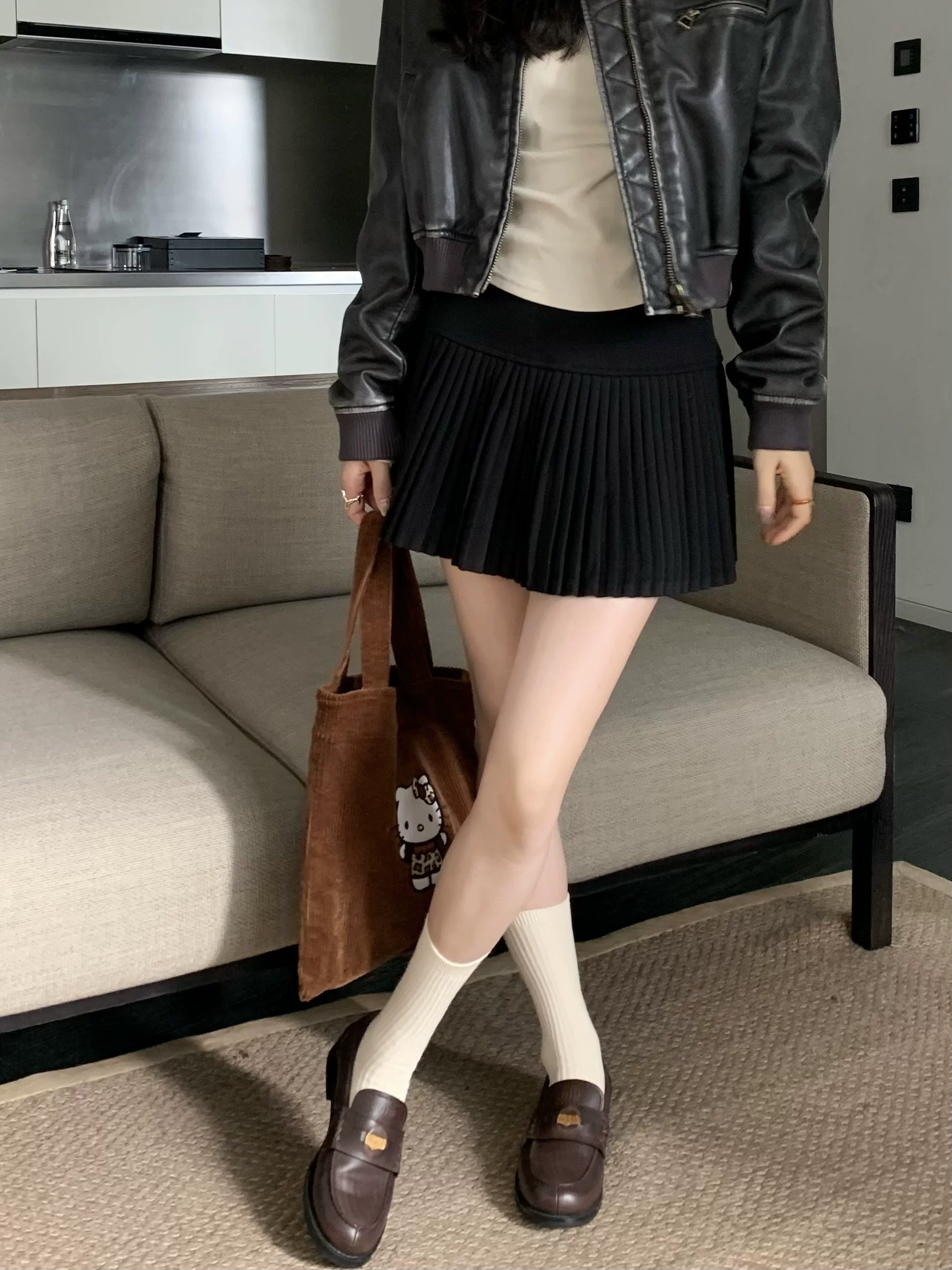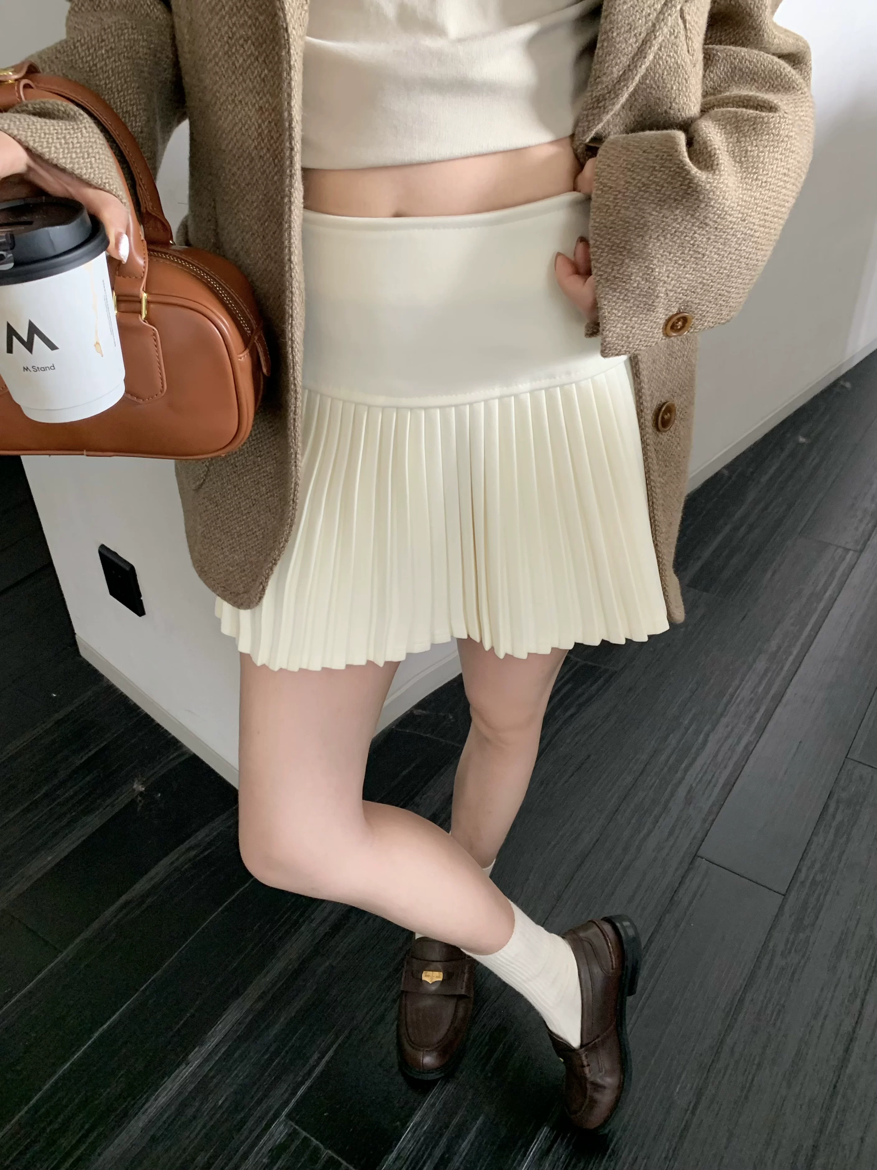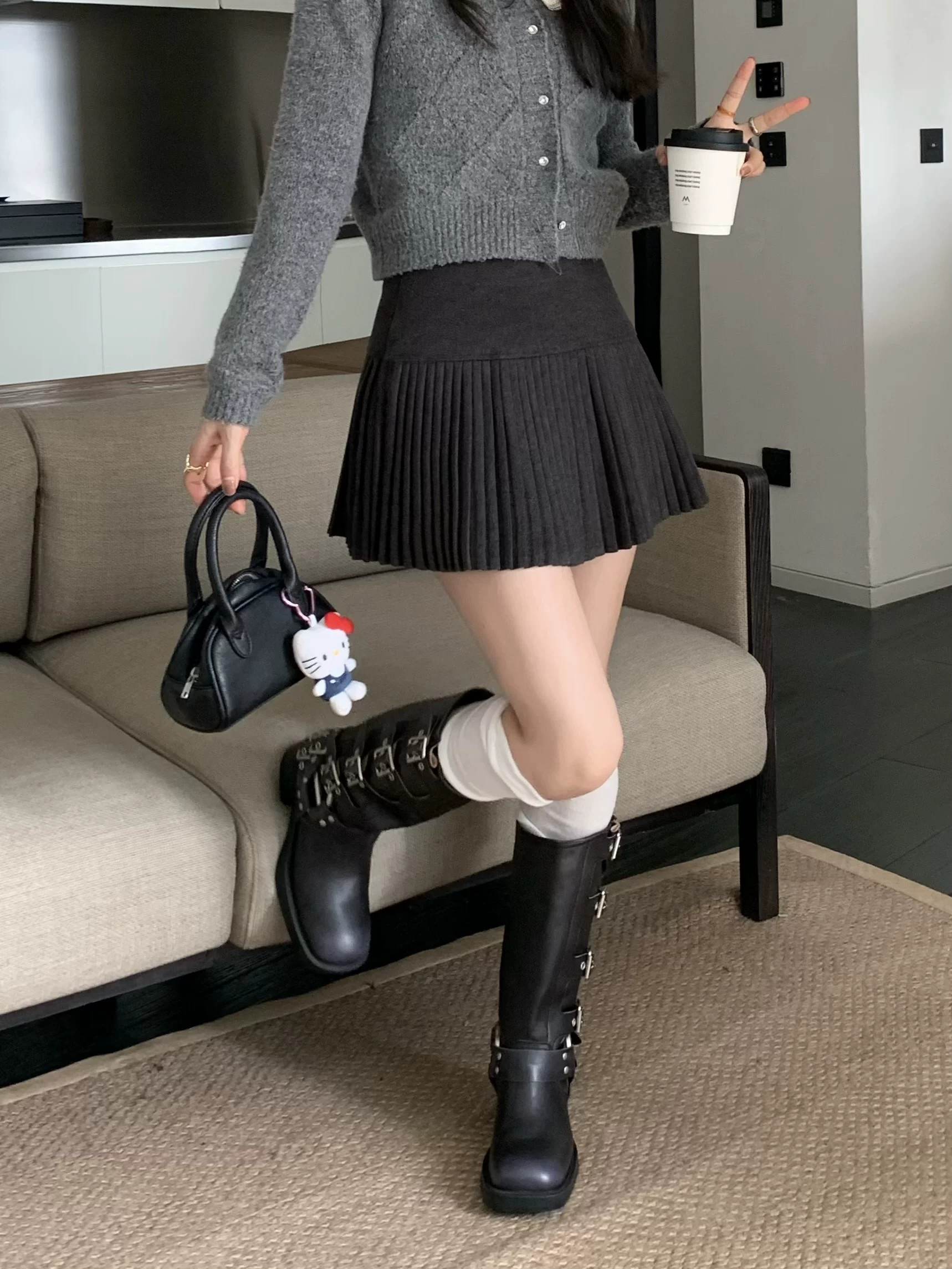 - Váy xếp ly màu xám dày cho mùa thu đông, cỡ lớn, che hông, dáng chữ A, váy ngắn chống lộ, váy len cỡ nhỏ, cạp cao.