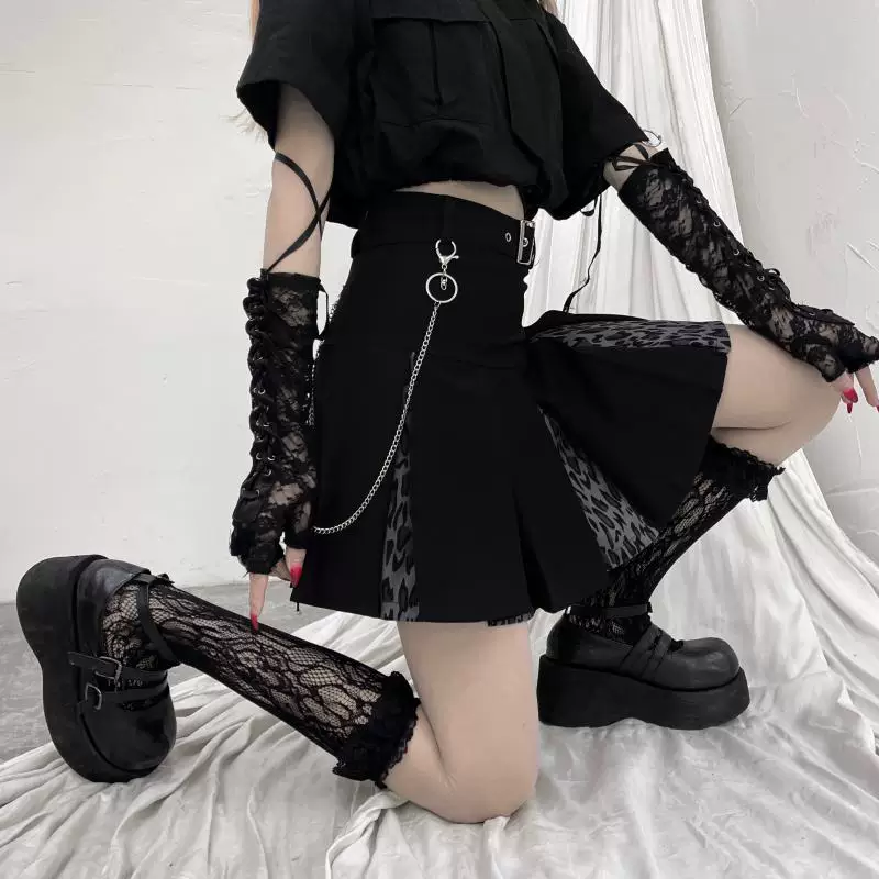Váy xếp ly ngọt ngào và mát mẻ dành cho nữ, váy chữ A cạp cao cỡ lớn, váy đồng phục kiểu học sinh JK, váy công sở có dây xích, váy ngắn.