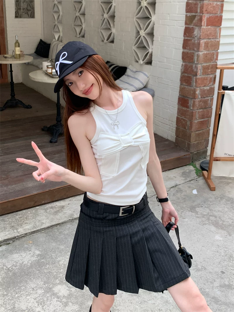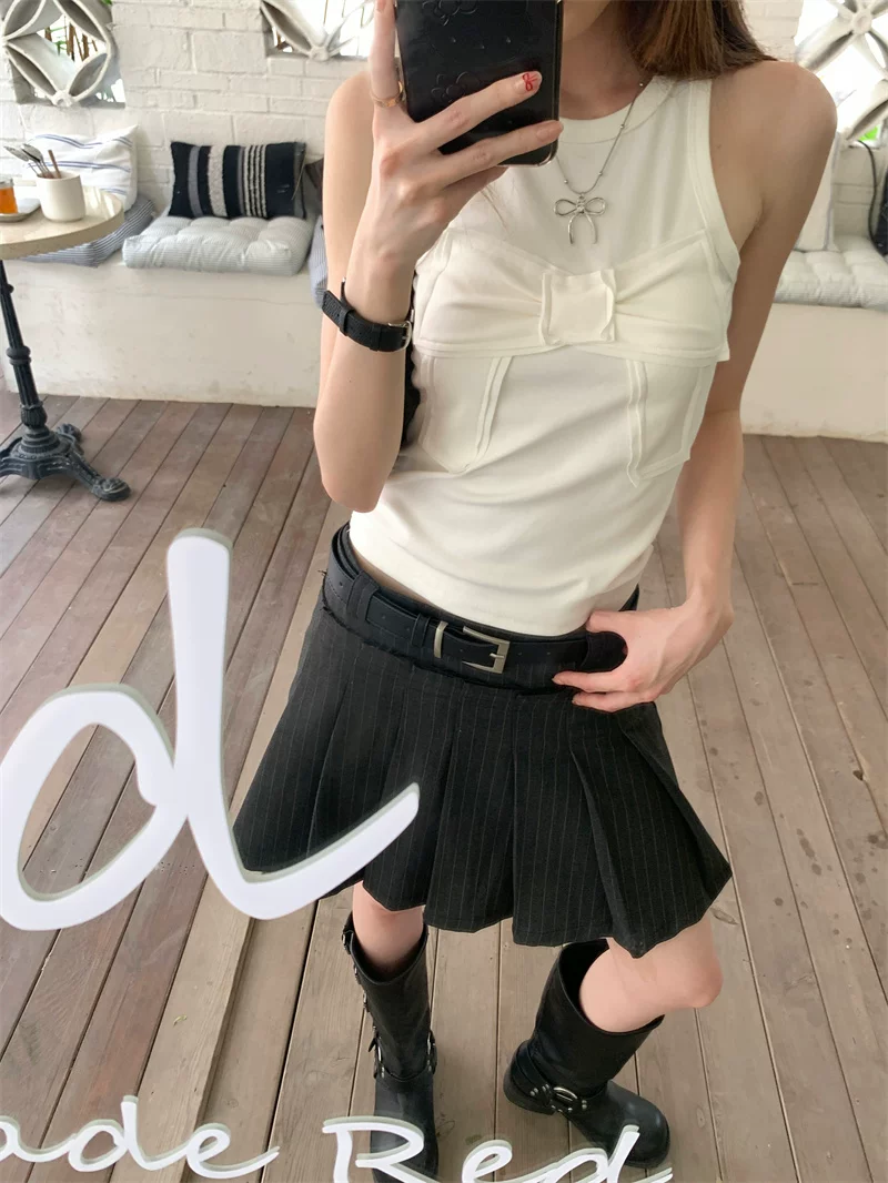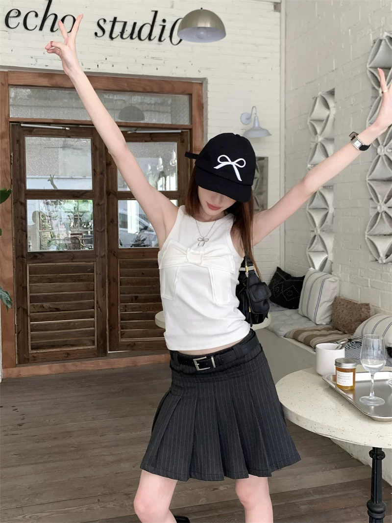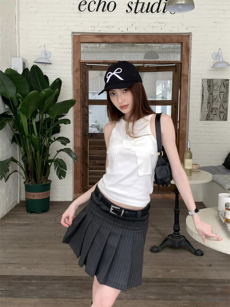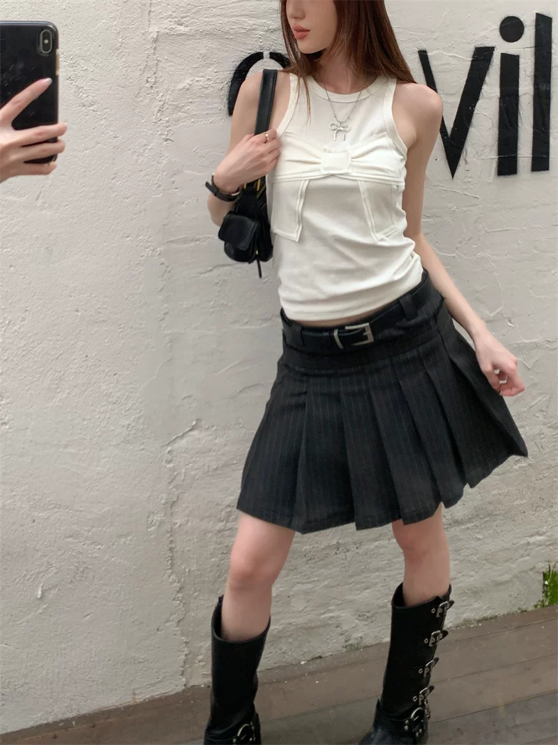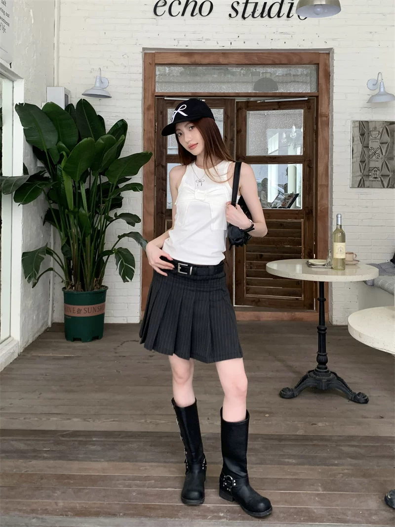 - Váy xếp ly sọc xám cỡ lớn dành cho nữ, váy ngắn kiểu học sinh lưng cao mùa hè, váy chữ A chống lộ.