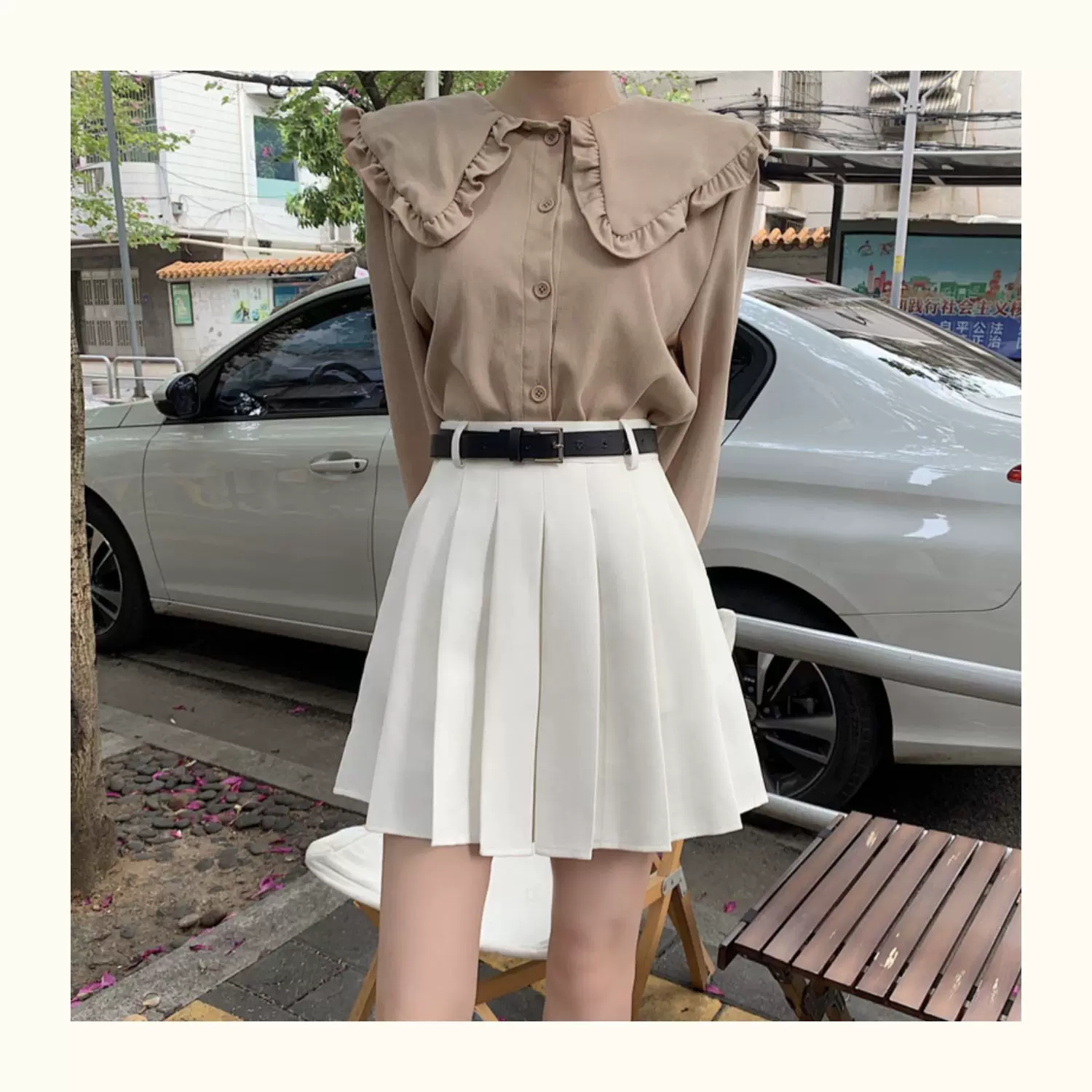 白色百褶裙,穿出你的少女感