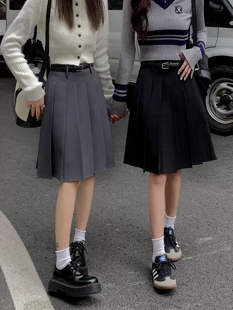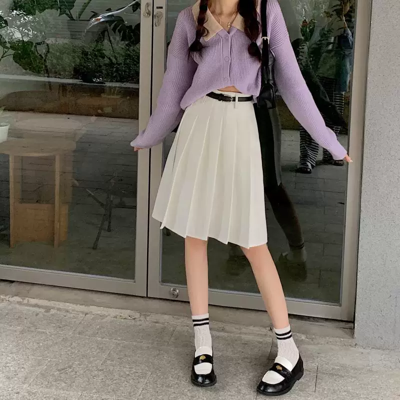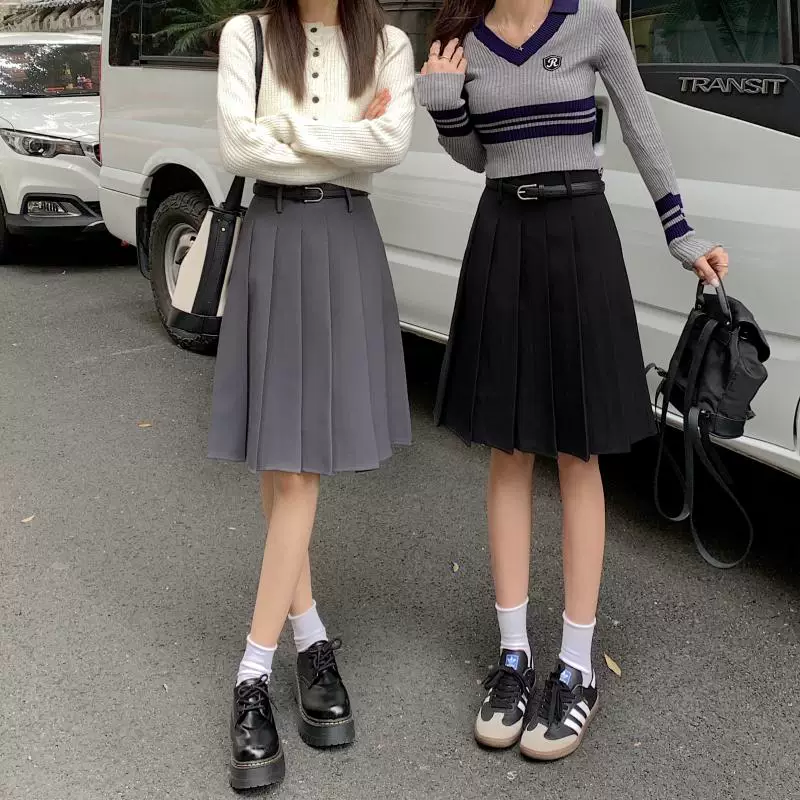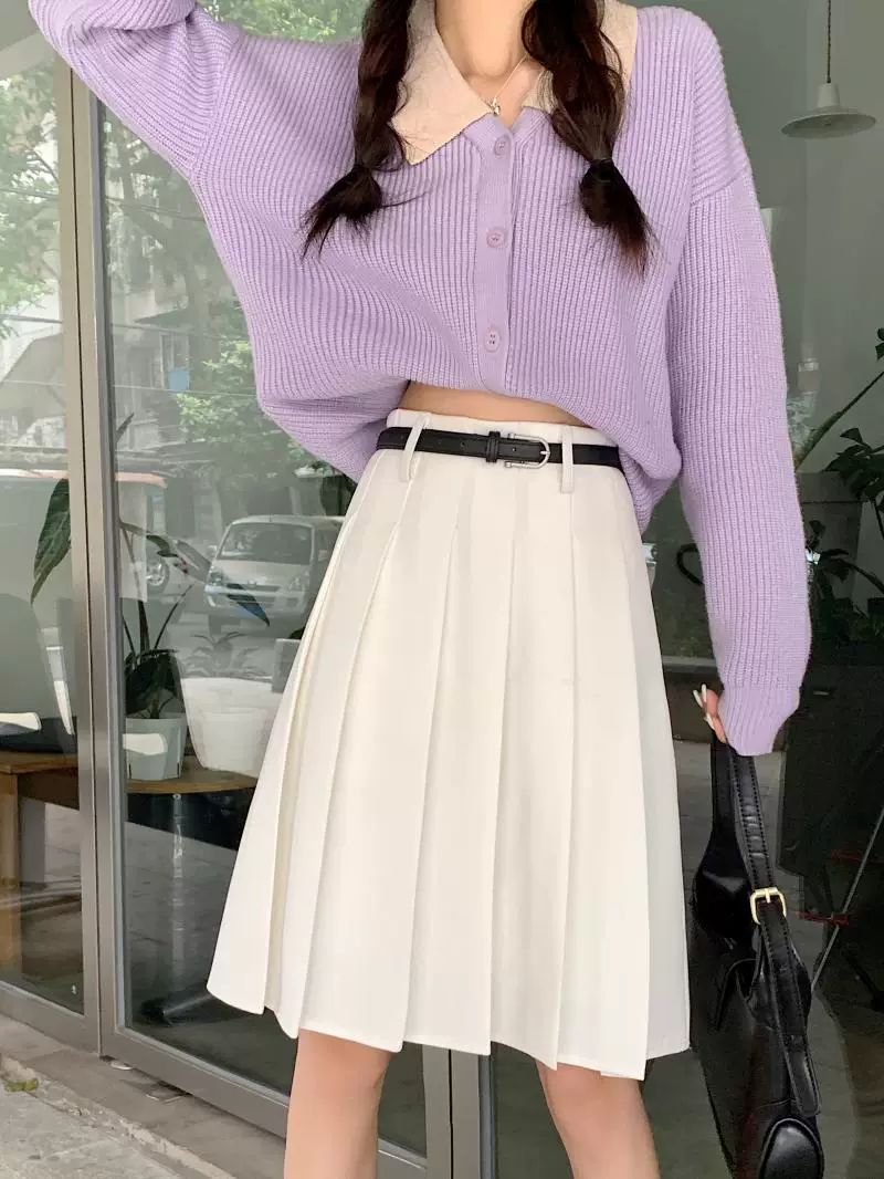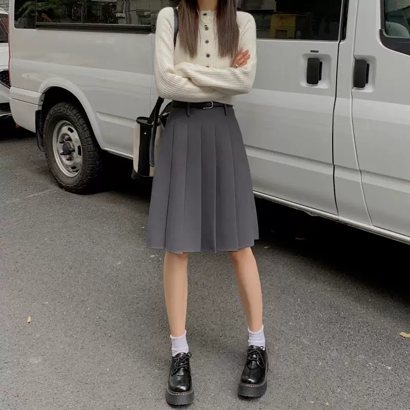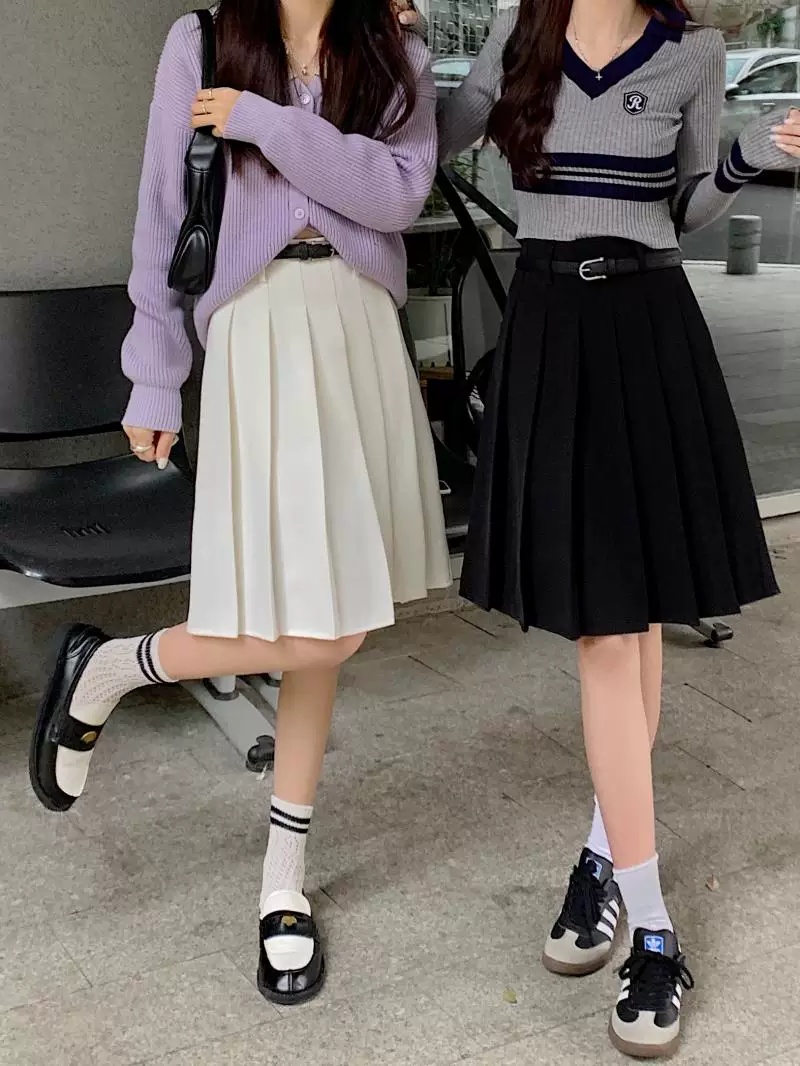 - Váy xếp ly trắng nữ, váy dài trung bình, kiểu mới hè 2025, cạp cao, dáng chữ A tôn dáng, váy xòe, váy nửa thân size lớn.