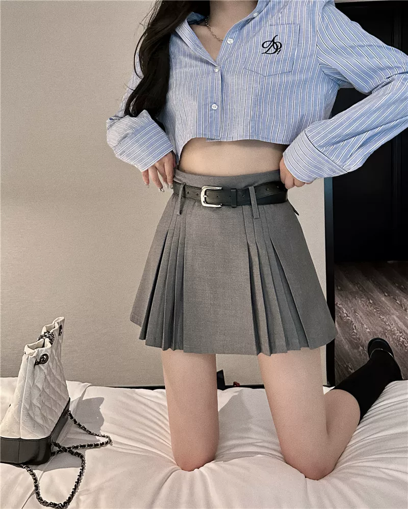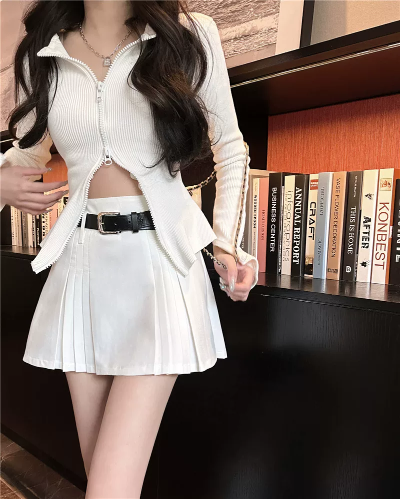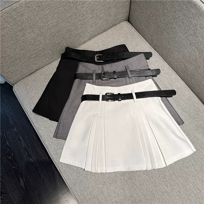 Váy xếp ly trắng size lớn cho nữ, thiết kế mới hè 2025, kiểu dáng độc đáo, chân váy ngắn chữ A, tôn dáng, lưng cao.
