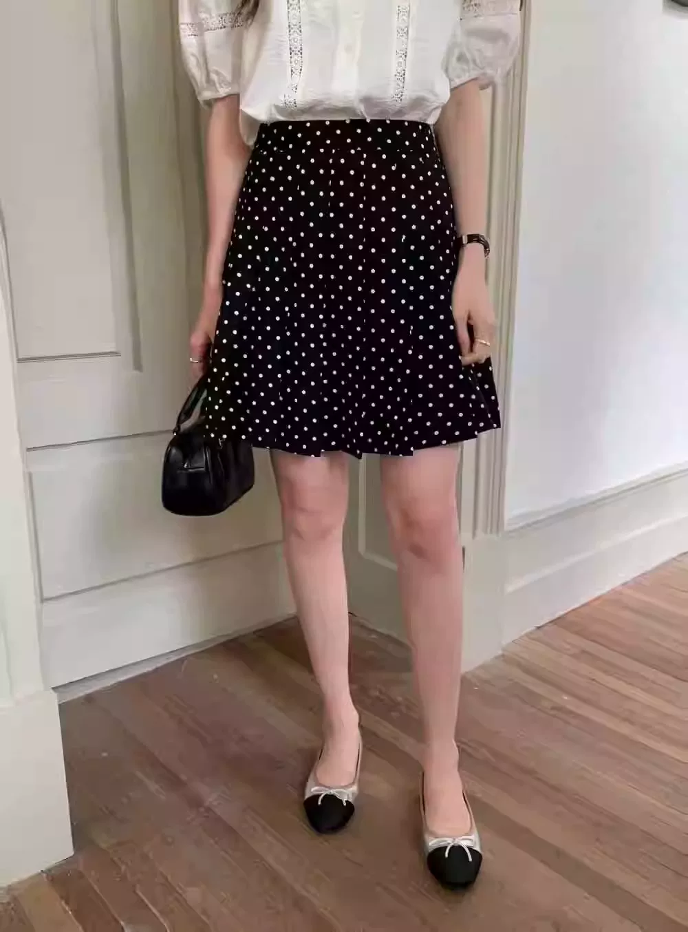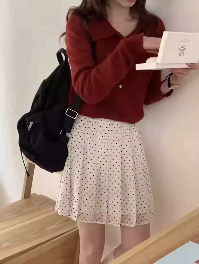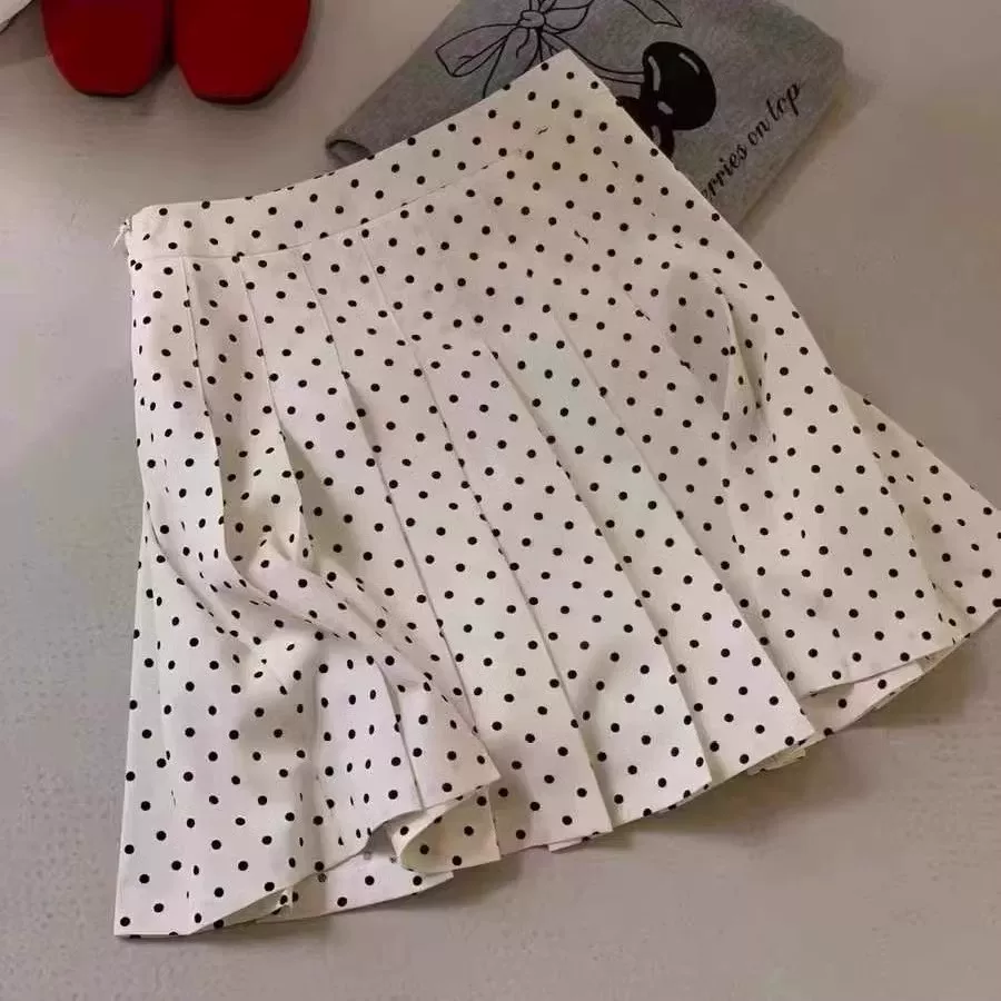 - Váy xếp ly voan chấm bi dành cho nữ, váy bodycon chữ A cạp cao cỡ lớn mùa hè, giúp giảm béo cho phụ nữ cỡ lớn, váy nửa thân chống lộ.