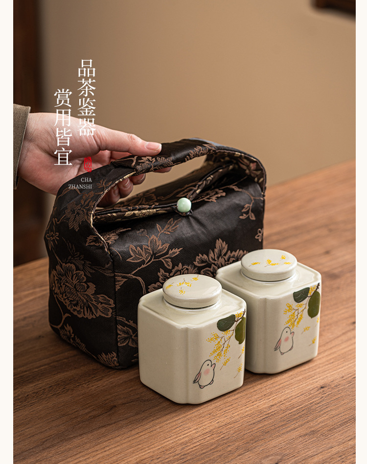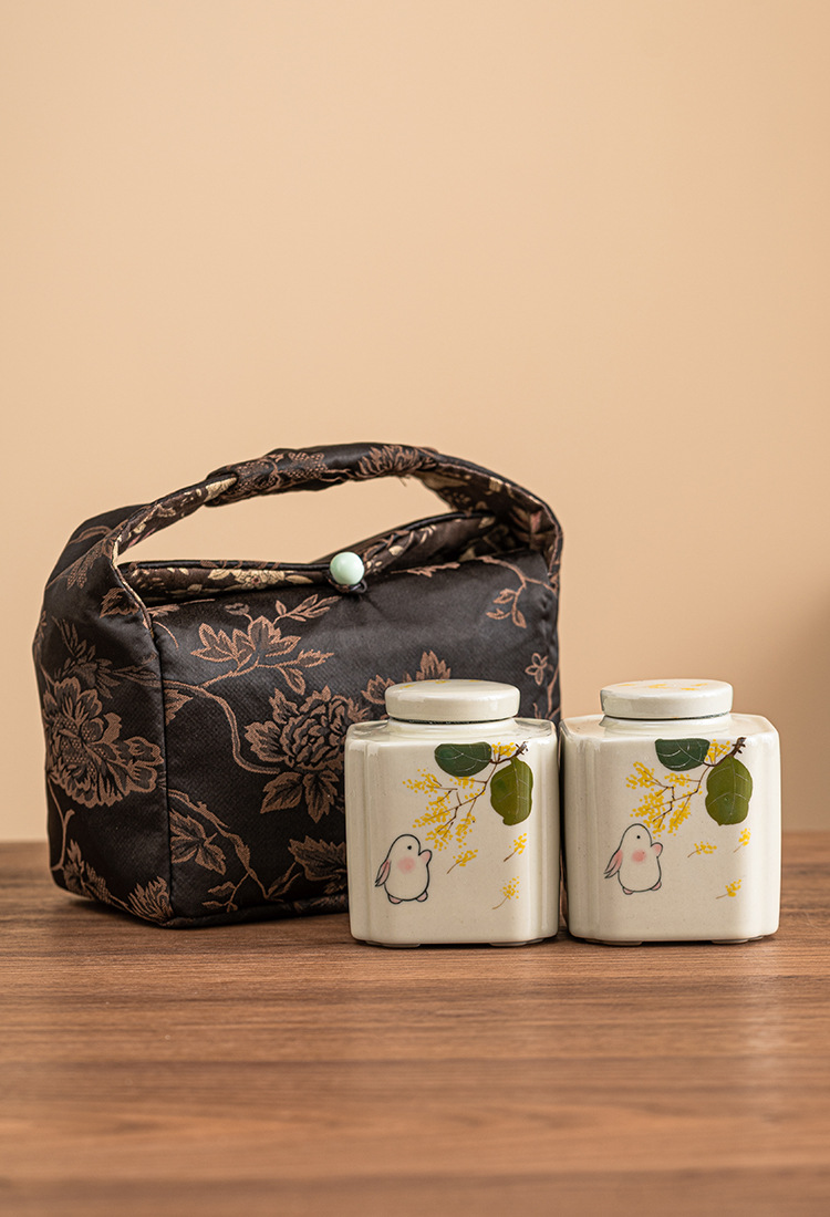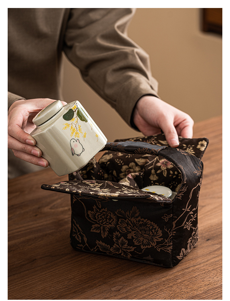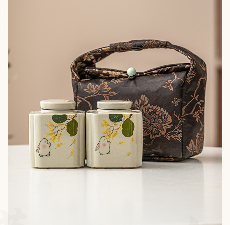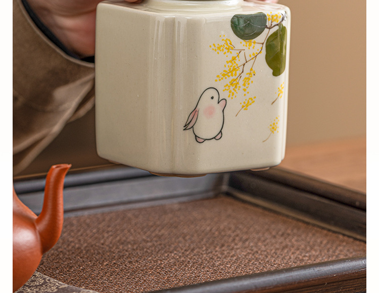 Vẽ tay bình trà thỏ Guiyue Vàng bình kín Bình đựng trà gốm sứ cầm tay nhỏ bình đựng đồ gia dụng chống ẩm