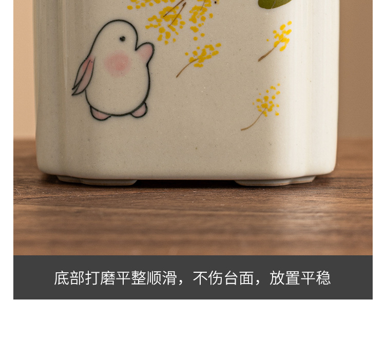 - Vẽ tay bình trà thỏ Guiyue Vàng bình kín Bình đựng trà gốm sứ cầm tay nhỏ bình đựng đồ gia dụng chống ẩm