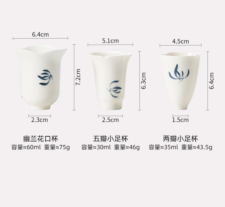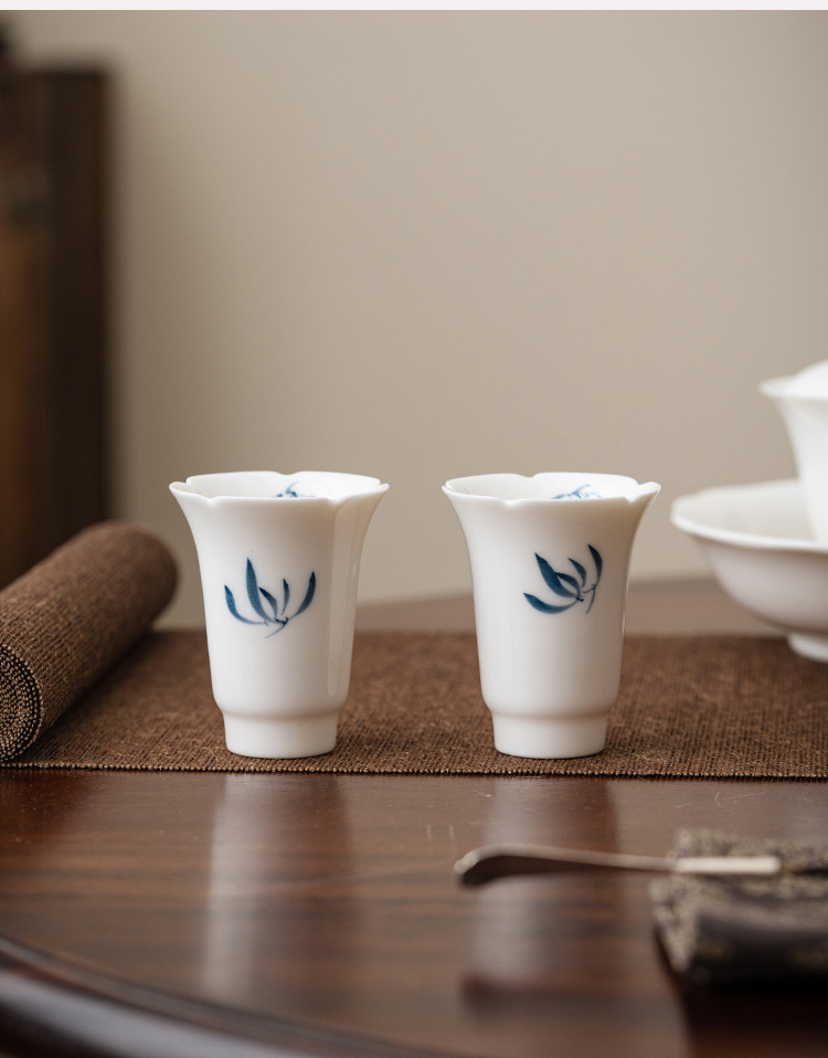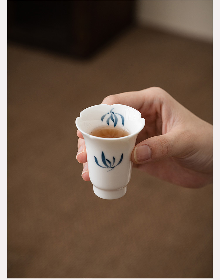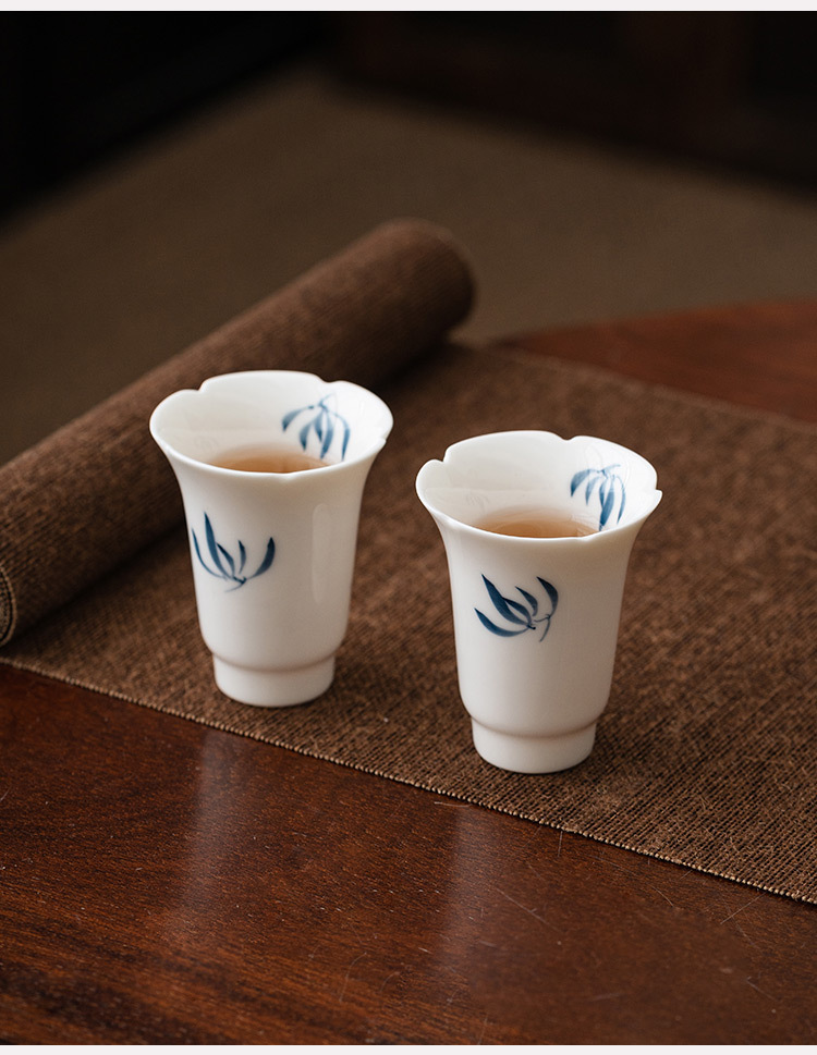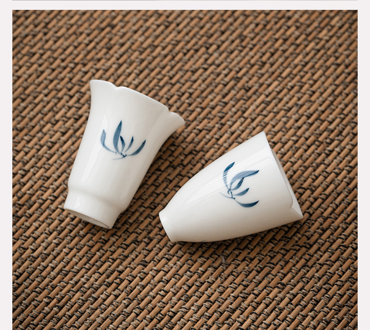 Vẽ tay bướm hoa lan cốc chân nhỏ cốc hương thơm cốc gốm sứ Kung Fu cốc chủ sở hữu cốc Đức Hoa bộ trà sứ trắng cốc trà