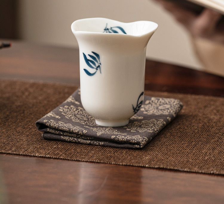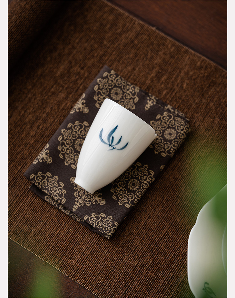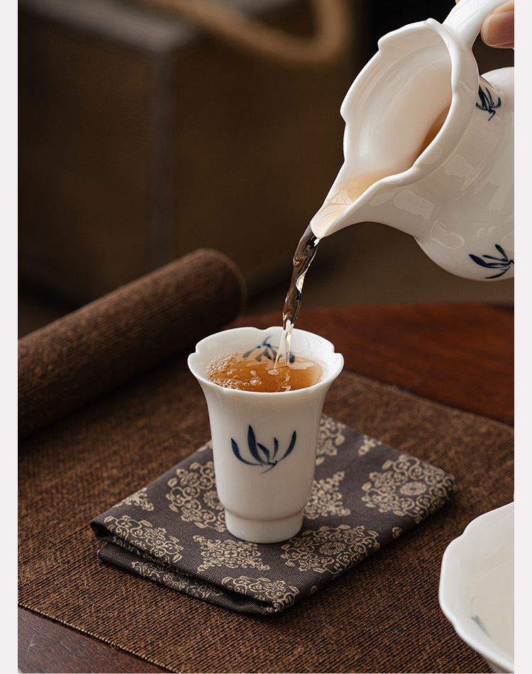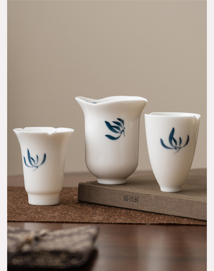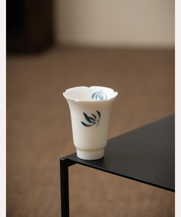 Vẽ tay bướm hoa lan cốc chân nhỏ cốc hương thơm cốc gốm sứ Kung Fu cốc chủ sở hữu cốc Đức Hoa bộ trà sứ trắng cốc trà