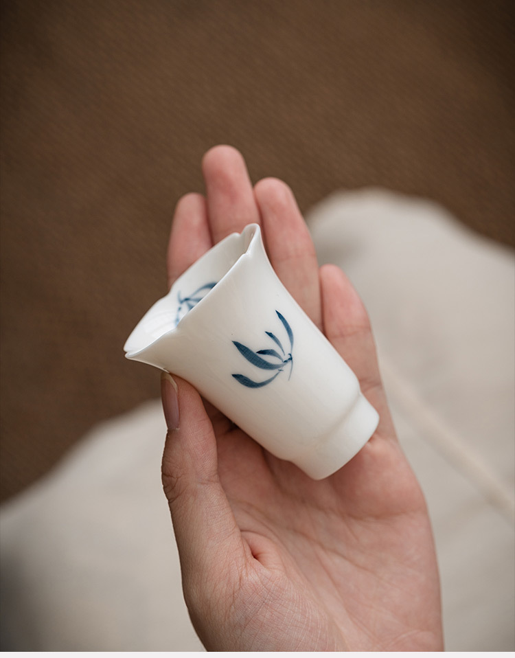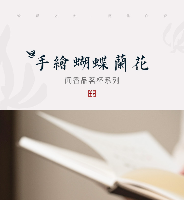- Vẽ tay bướm hoa lan cốc chân nhỏ cốc hương thơm cốc gốm sứ Kung Fu cốc chủ sở hữu cốc Đức Hoa bộ trà sứ trắng cốc trà