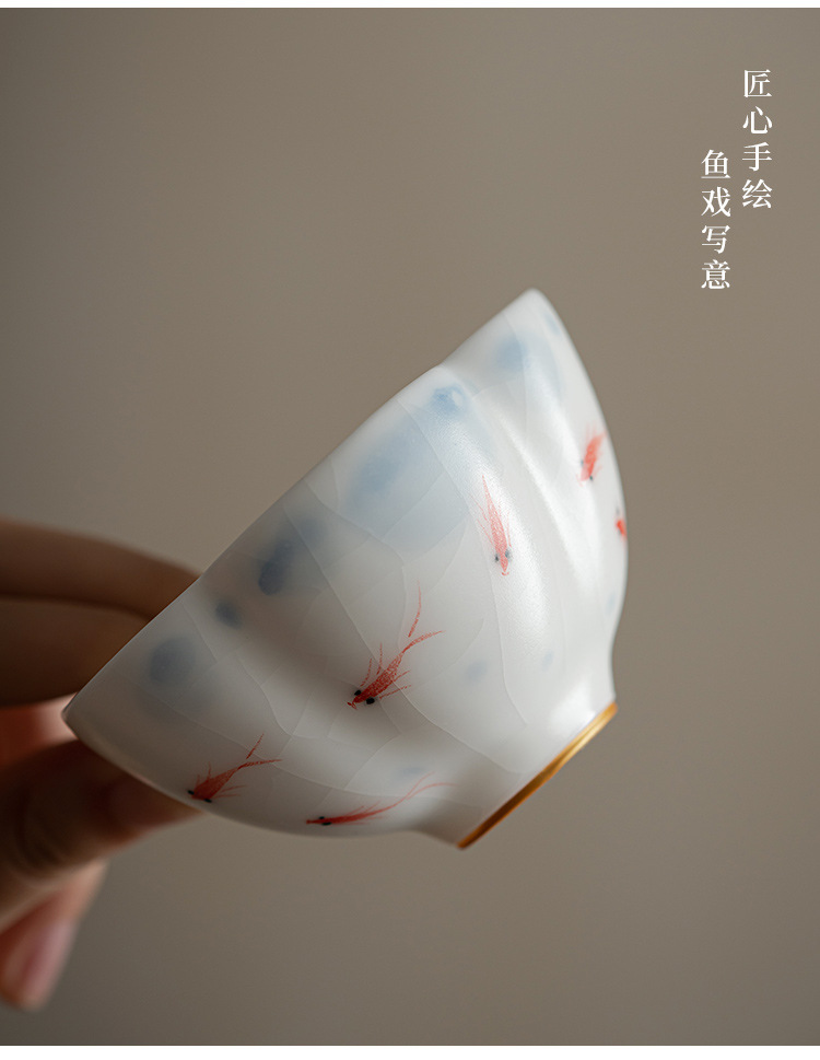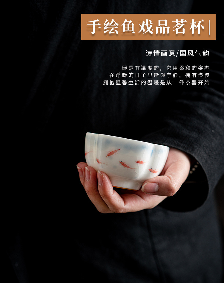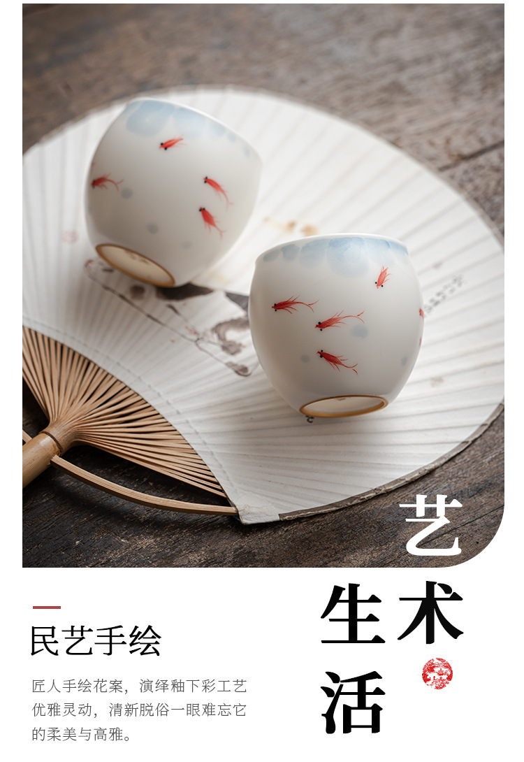 Vẽ tay chơi cá, cốc chủ, cốc trà Ru, cốc trà, cốc trà, cốc trà, cốc đơn gốm sứ cao cấp, quà lưu niệm