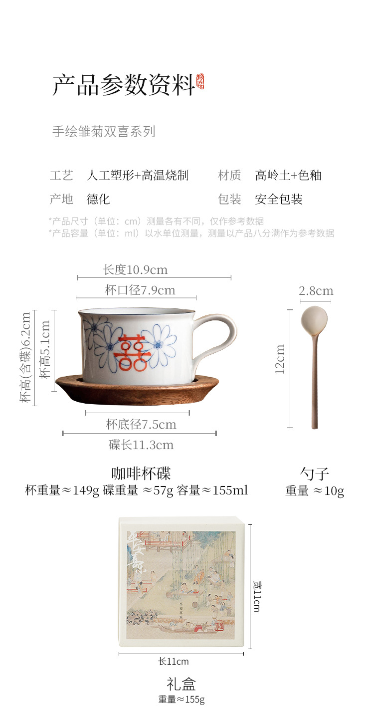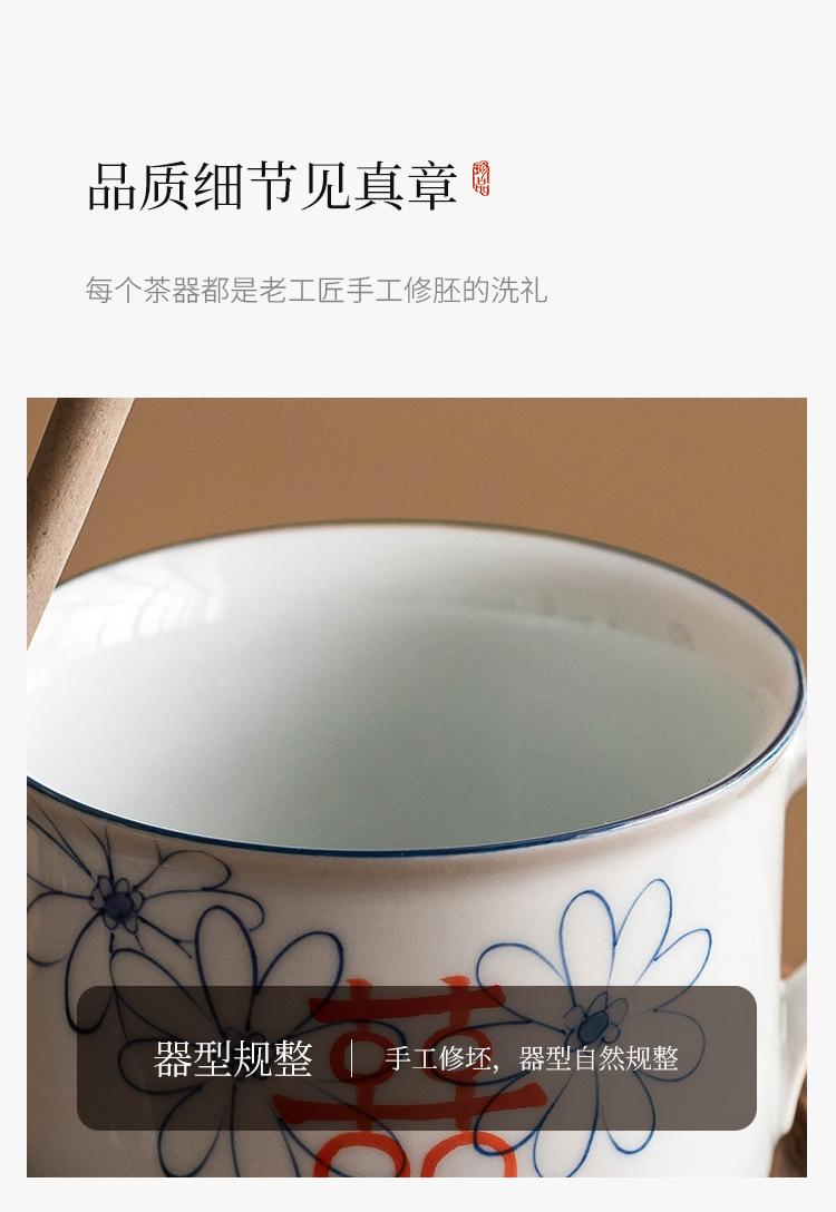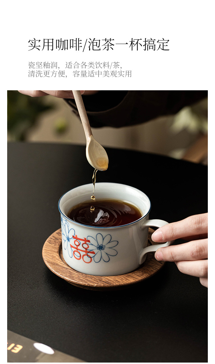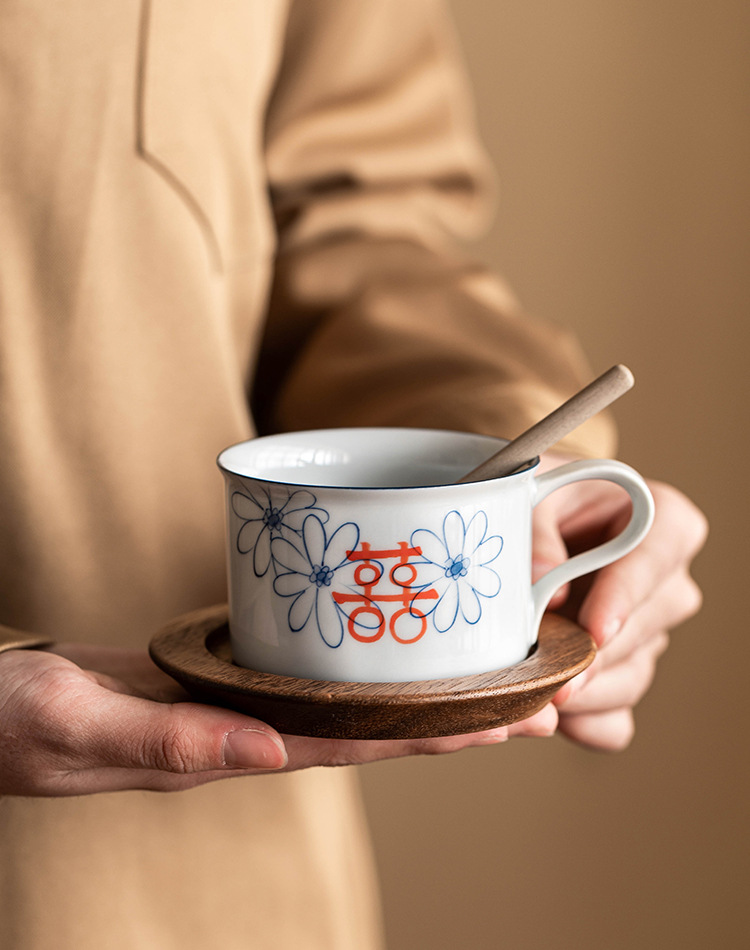 - Vẽ tay Daisy Double Happiness Coffee Cup Bộ cốc và đĩa Cốc uống nước gia dụng Cốc mug Cốc trà chiều tinh tế Cốc nước