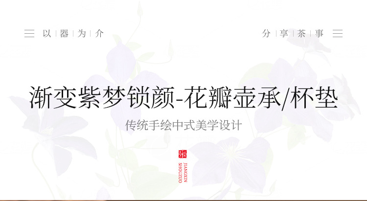 Vẽ tay đế lót ly màu tím gradient mơ mộng khóa mặt ấm cánh hoa đế cốc trà đế đế lót cách nhiệt bàn pha trà bàn phụ kiện trà đạo