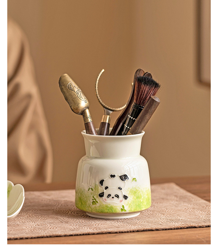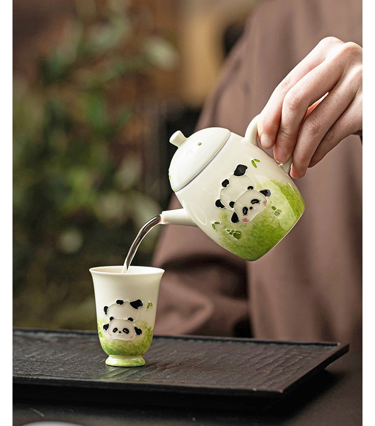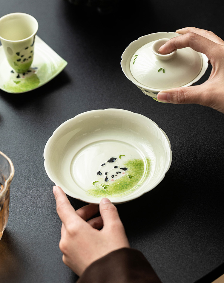 - Vẽ tay gấu trúc chơi thế giới cốc trà nắp bát trà biển ấm trà phụ kiện trà đạo bộ trà sứ gia dụng kungfu đơn