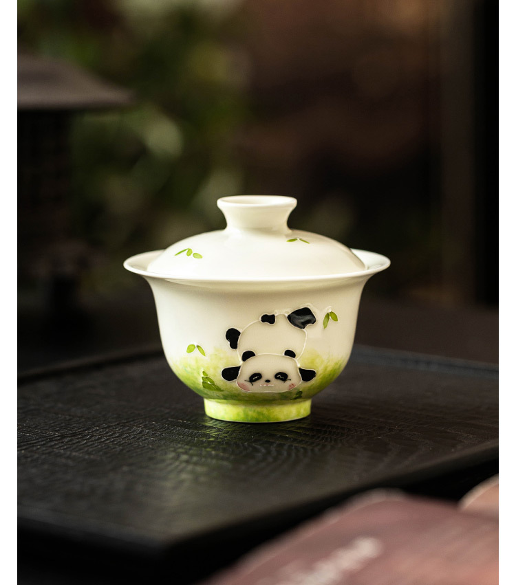 Vẽ tay gấu trúc chơi thế giới cốc trà nắp bát trà biển ấm trà phụ kiện trà đạo bộ trà sứ gia dụng kungfu đơn