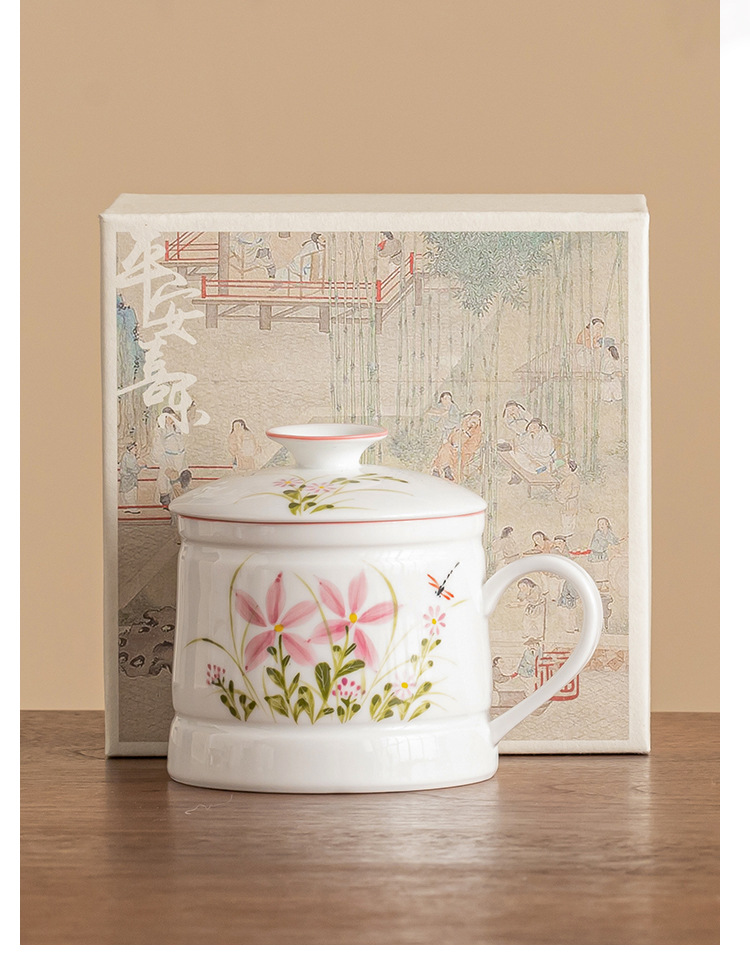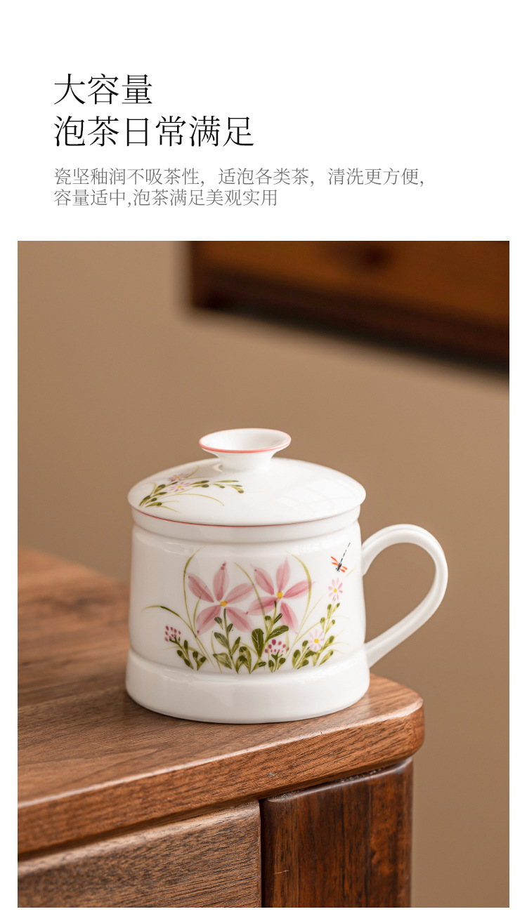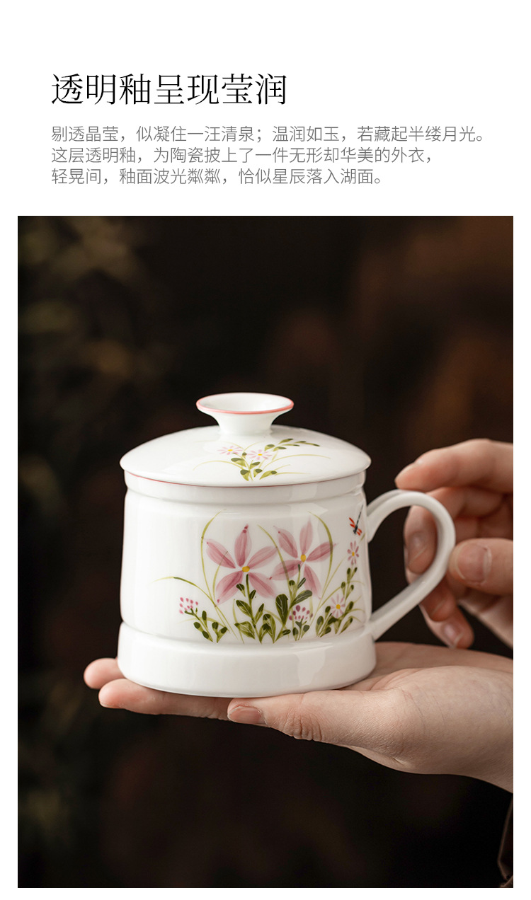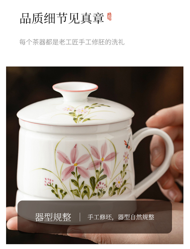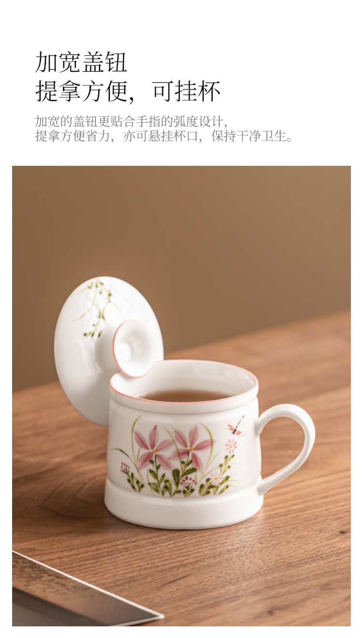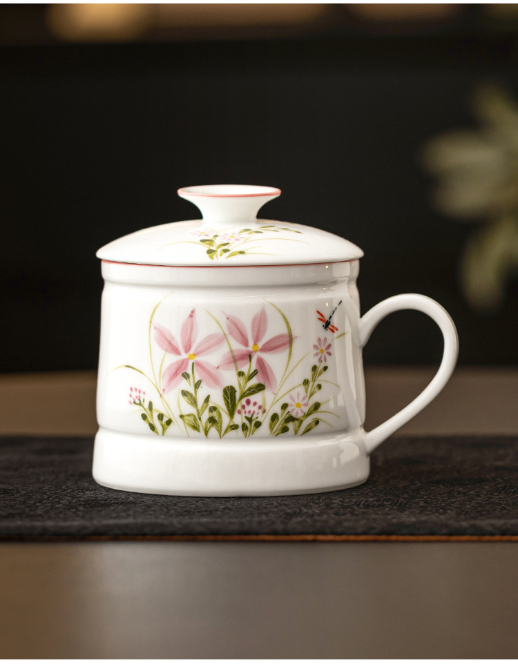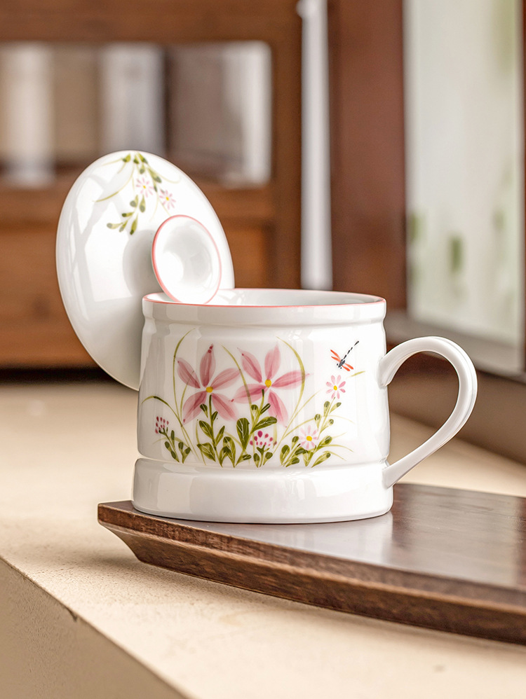 Vẽ tay hoa cúc chuồn chuồn cốc văn phòng cốc uống nước gia dụng gốm cốc pha trà dung tích lớn cốc tách nước trà đơn