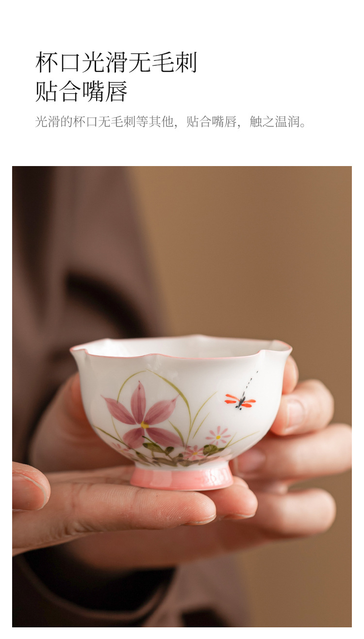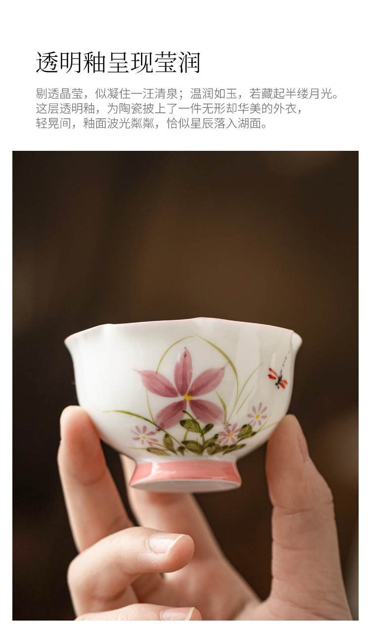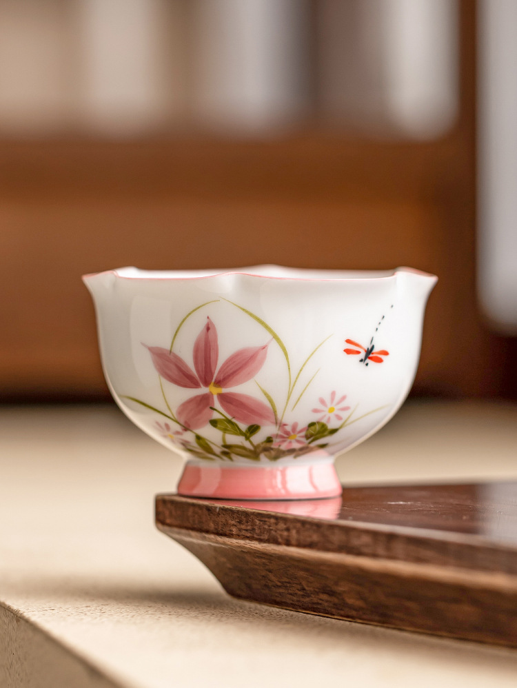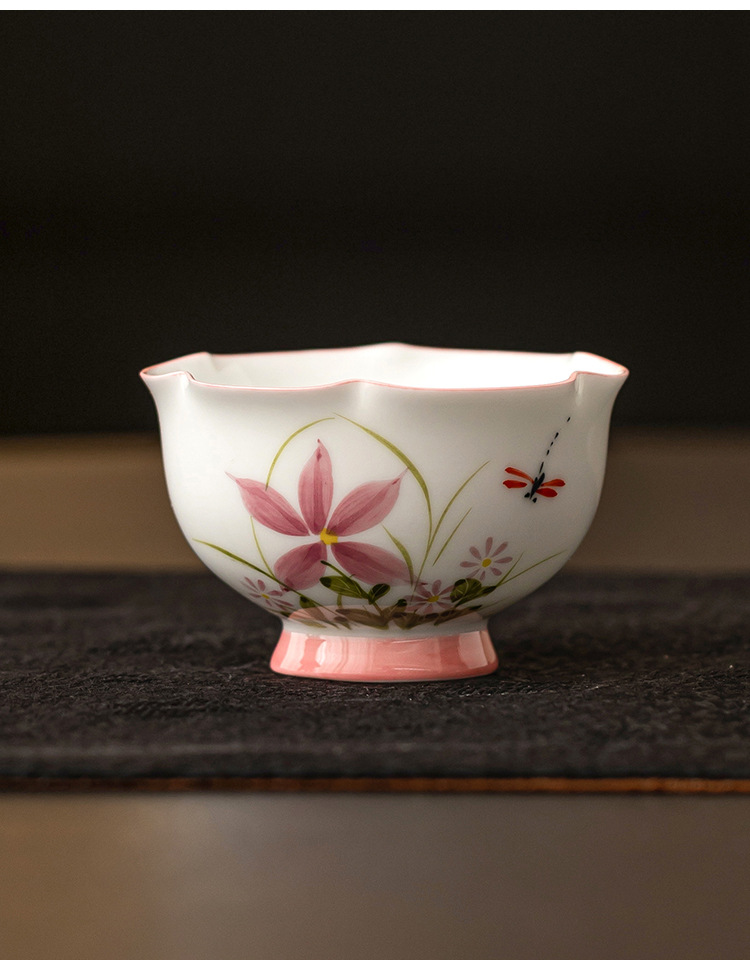 Vẽ tay hoa cúc, chuồn chuồn, nụ hoa, cốc chủ gốm, cốc uống trà đơn, cốc trà kung fu gia dụng, cốc trà ngon