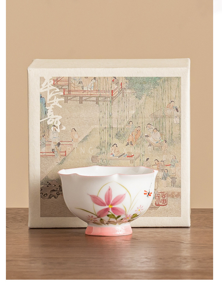 - Vẽ tay hoa cúc, chuồn chuồn, nụ hoa, cốc chủ gốm, cốc uống trà đơn, cốc trà kung fu gia dụng, cốc trà ngon