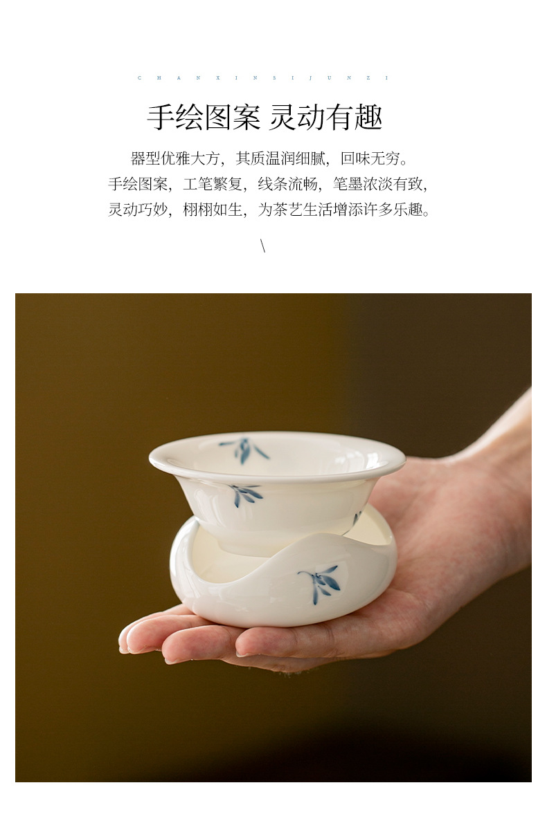 Vẽ tay hoa lan sứ trắng gốm sứ lọc trà kết hợp tách trà bộ trà Kung Fu phụ kiện tách lọc trà