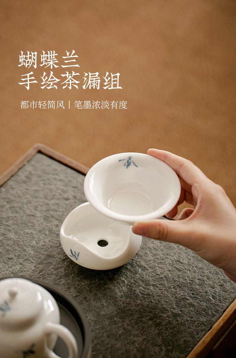 - Vẽ tay hoa lan sứ trắng gốm sứ lọc trà kết hợp tách trà bộ trà Kung Fu phụ kiện tách lọc trà