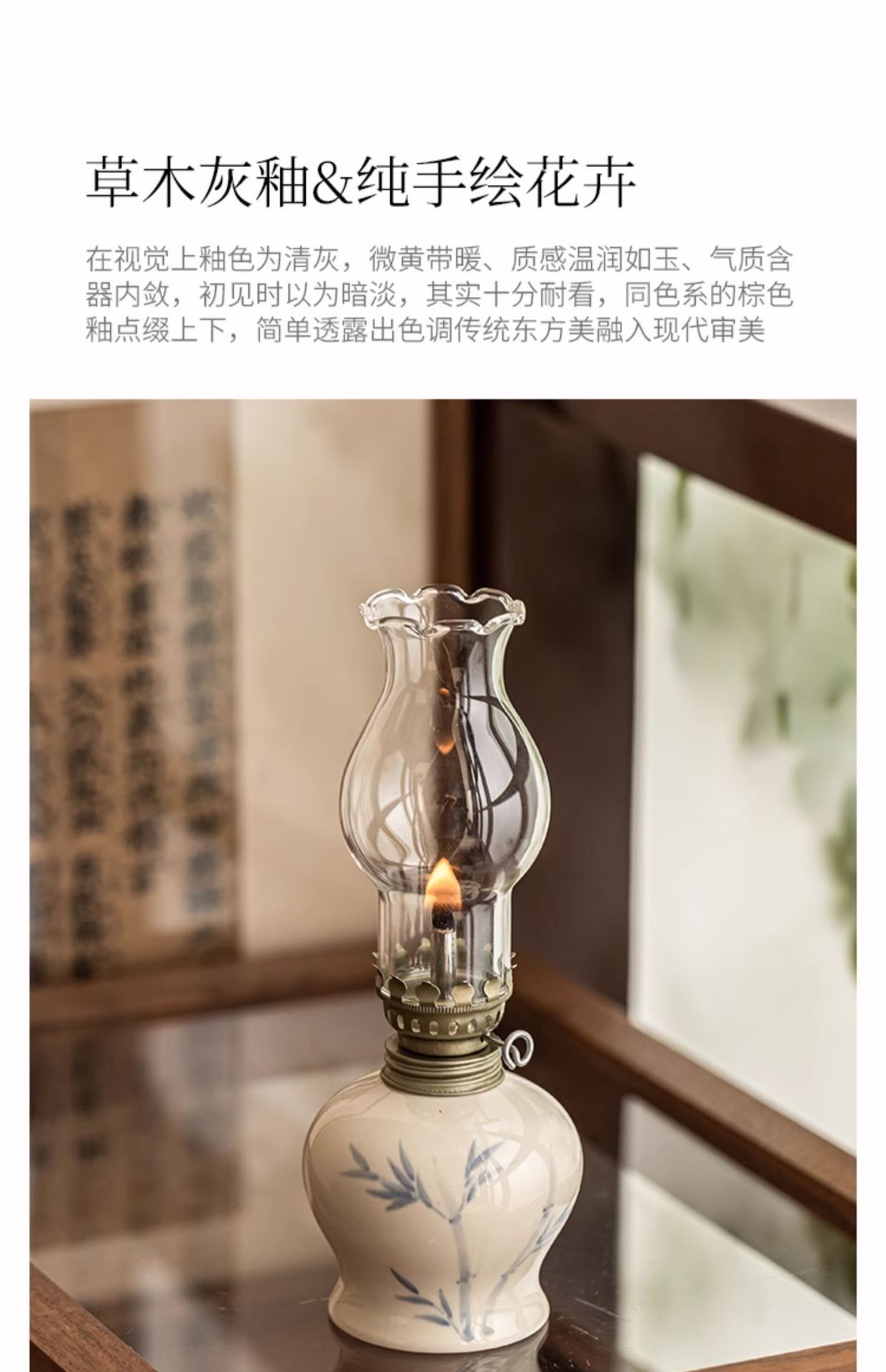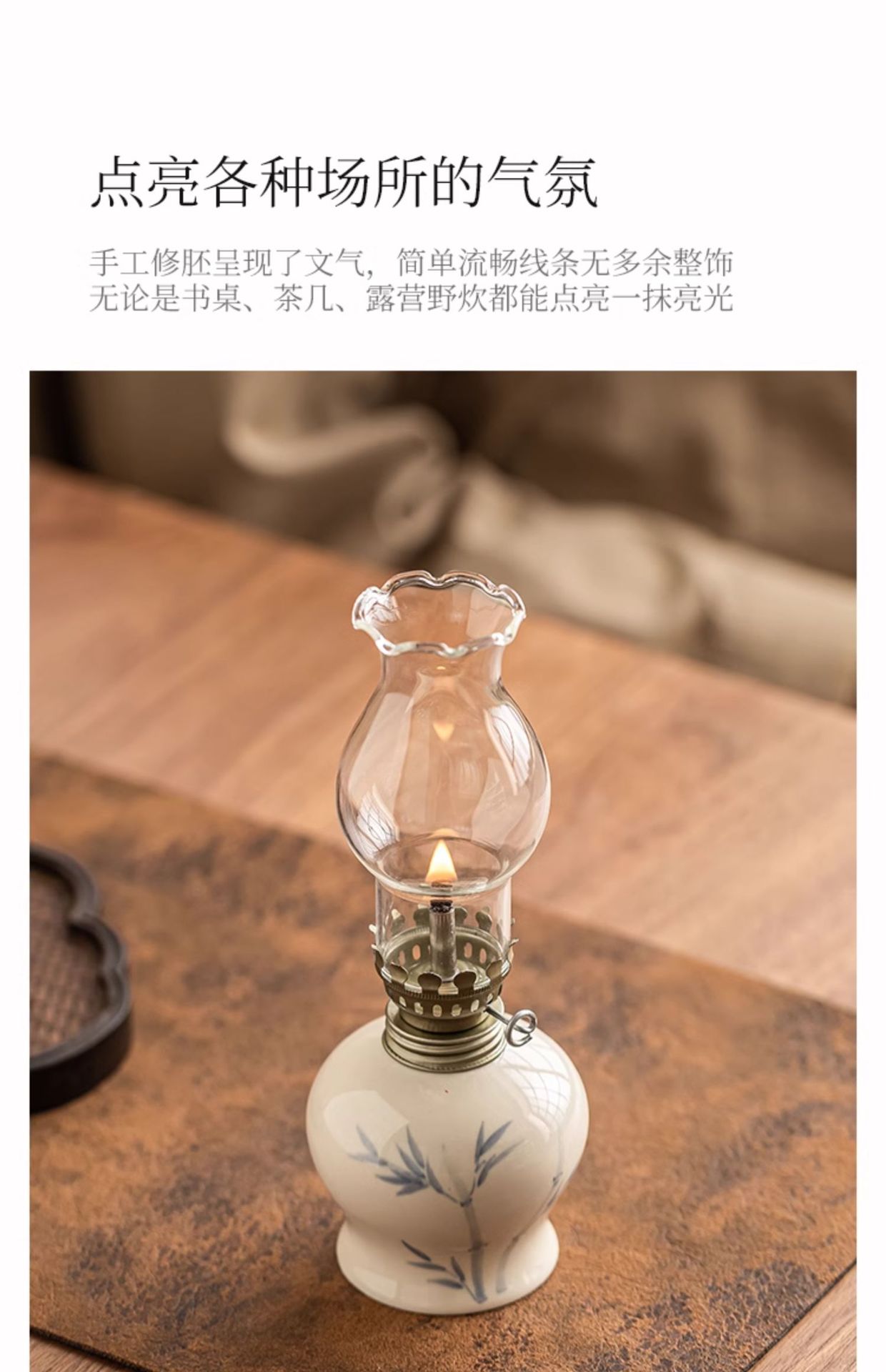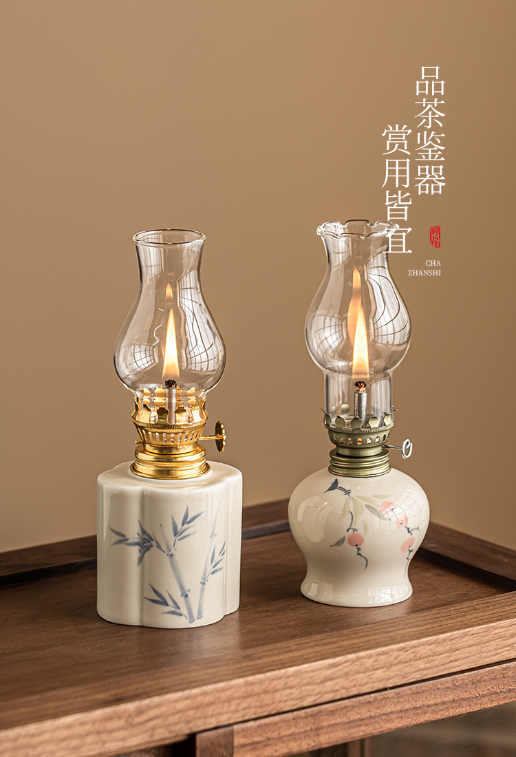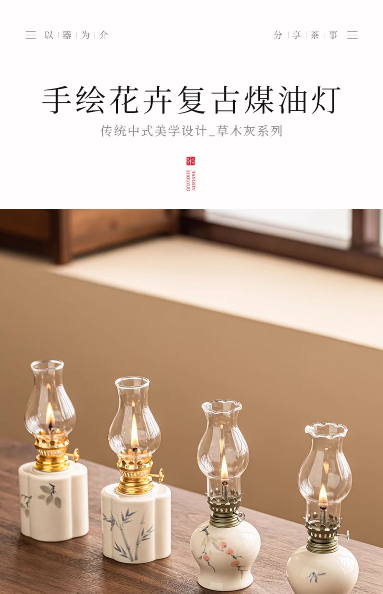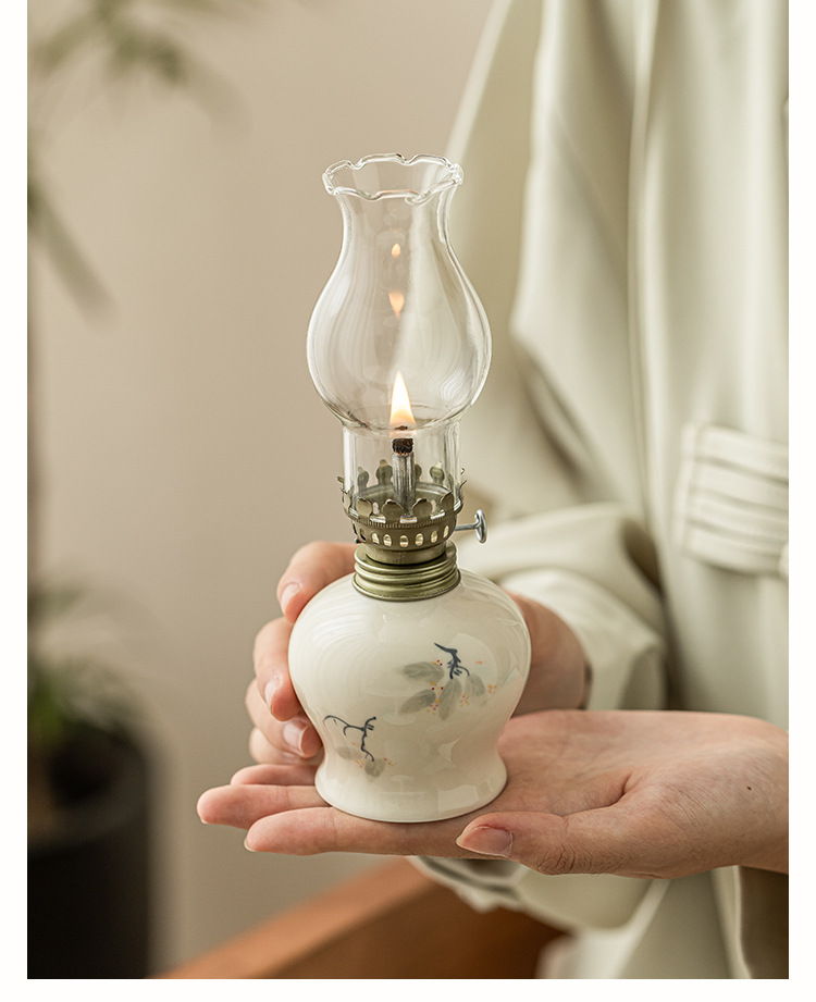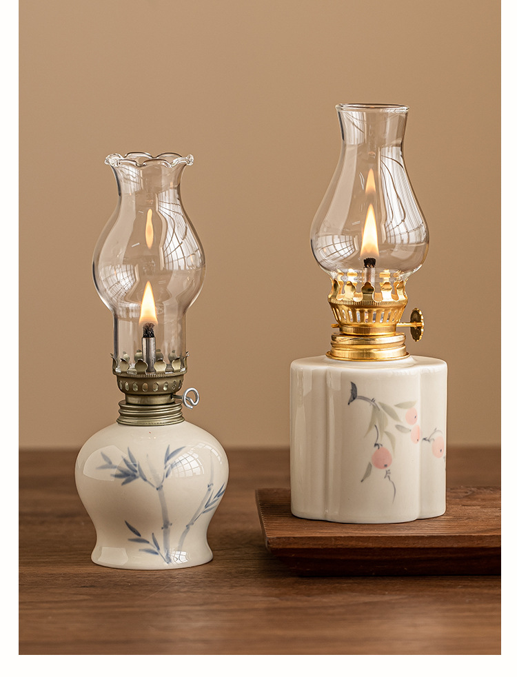 - Vẽ tay hoa retro đèn dầu gốm sứ đèn bơ đèn mới Trung Quốc phòng học phòng ngủ đèn trang trí đèn